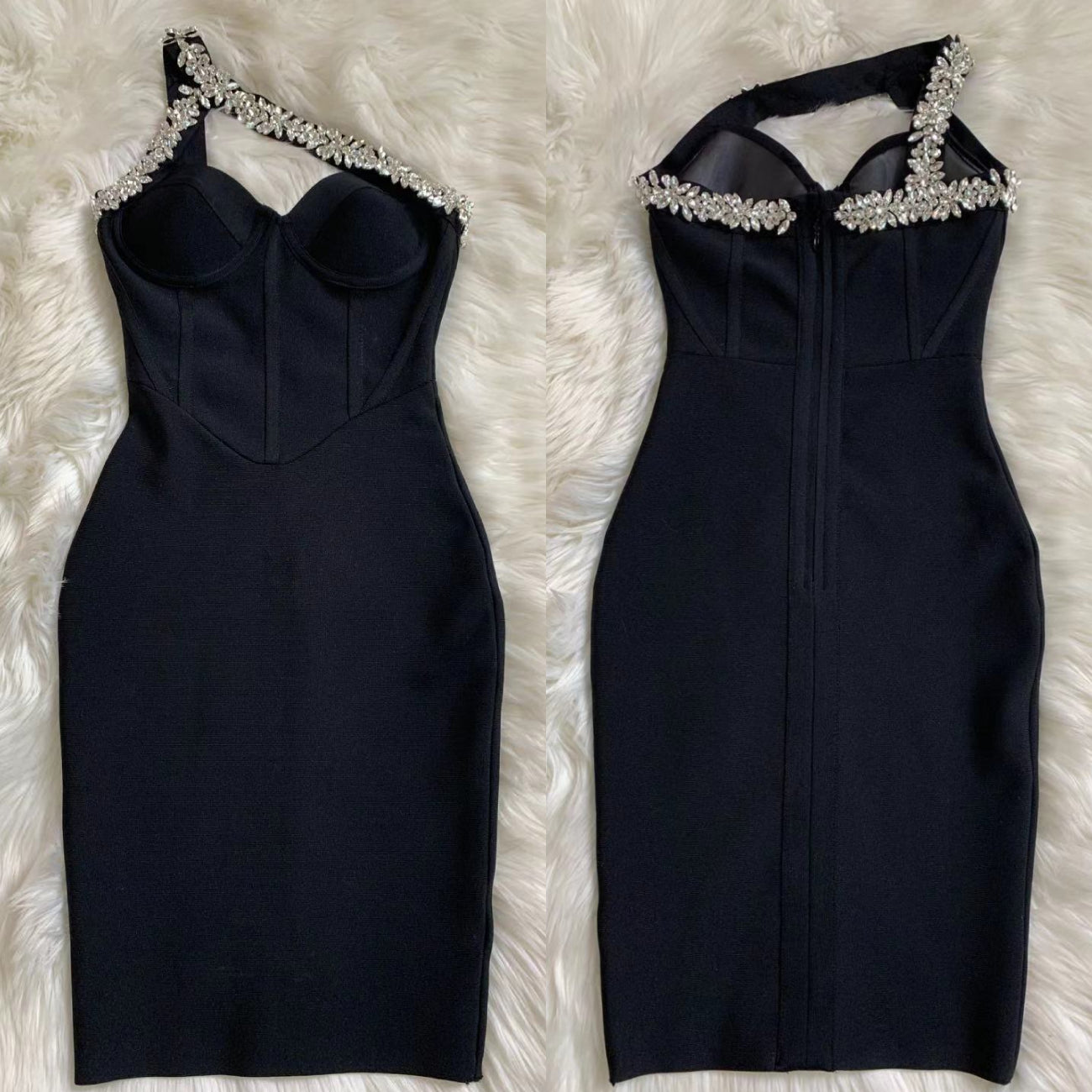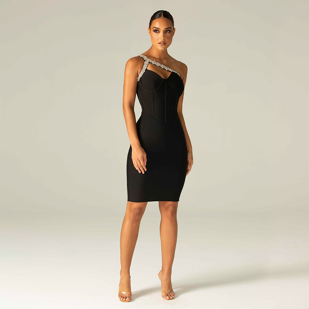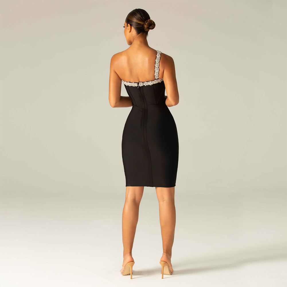 One Shoulder Rhinestone Mini Bandage Dress PH01214