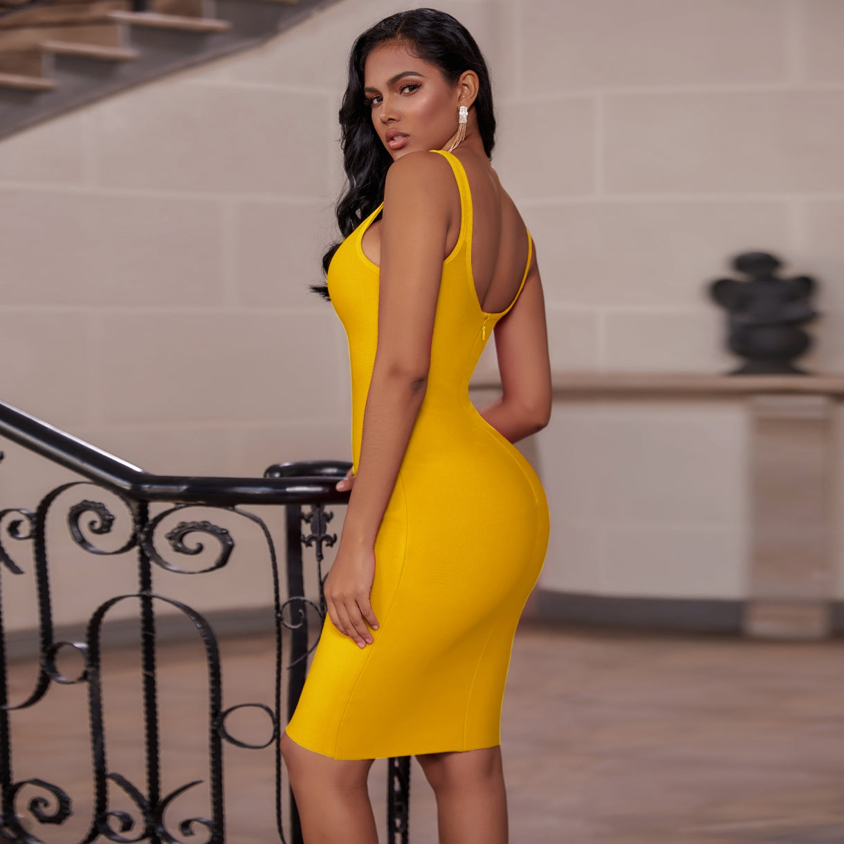 Indulge in luxury with this classic Strappy Sleeveless Backless Bandage Dress PK19124. Crafted from a beautiful blend of materials, this timeless dress is designed to hug your figure and flatter your curves with a strappy sleeveless style and backless silhouette. Experience sophistication and elegance with this exquisite piece.