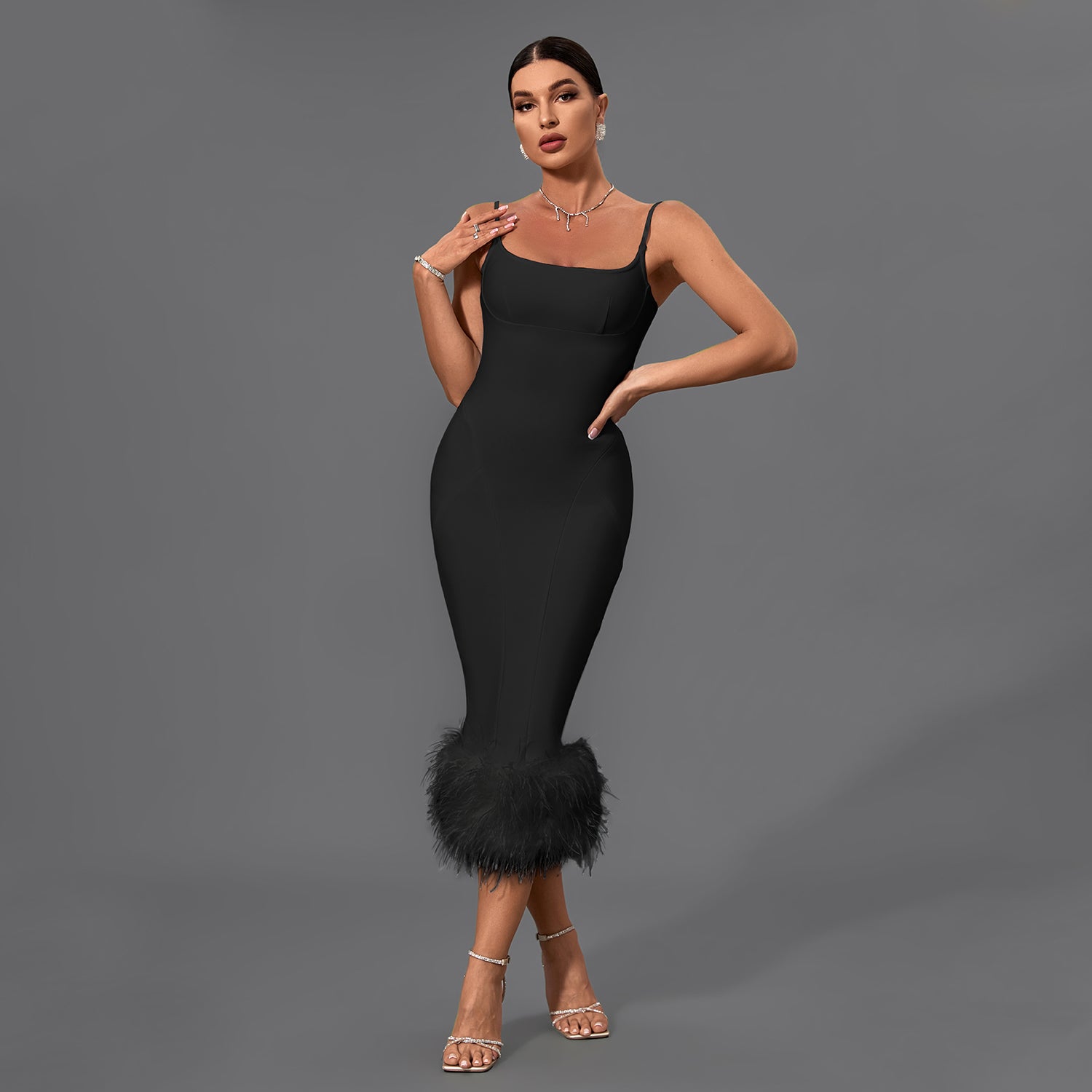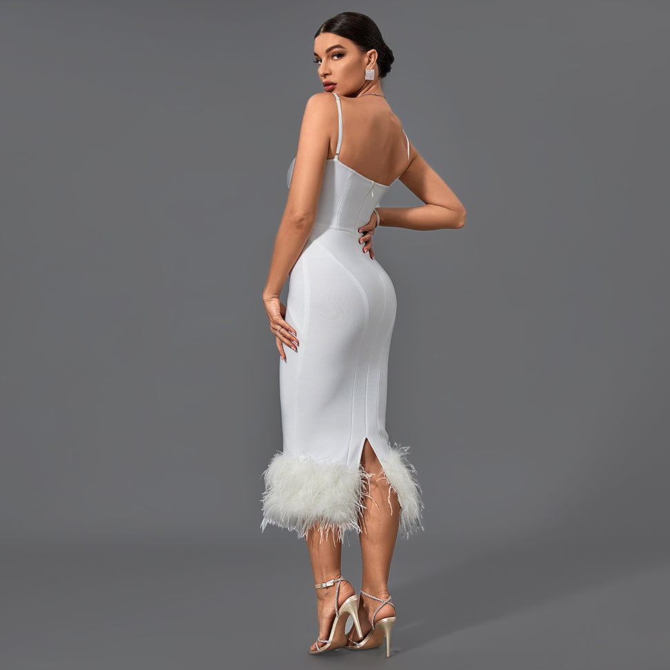 Strappy Feather Midi Bandage Dress