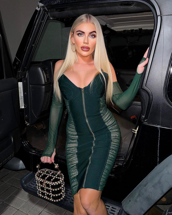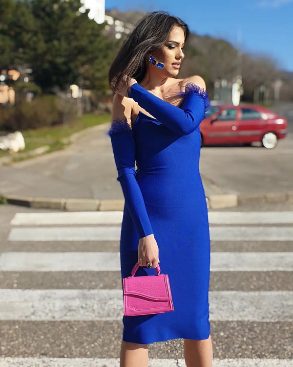 Off Shoulder Long Sleeve Midi Bandage Dress