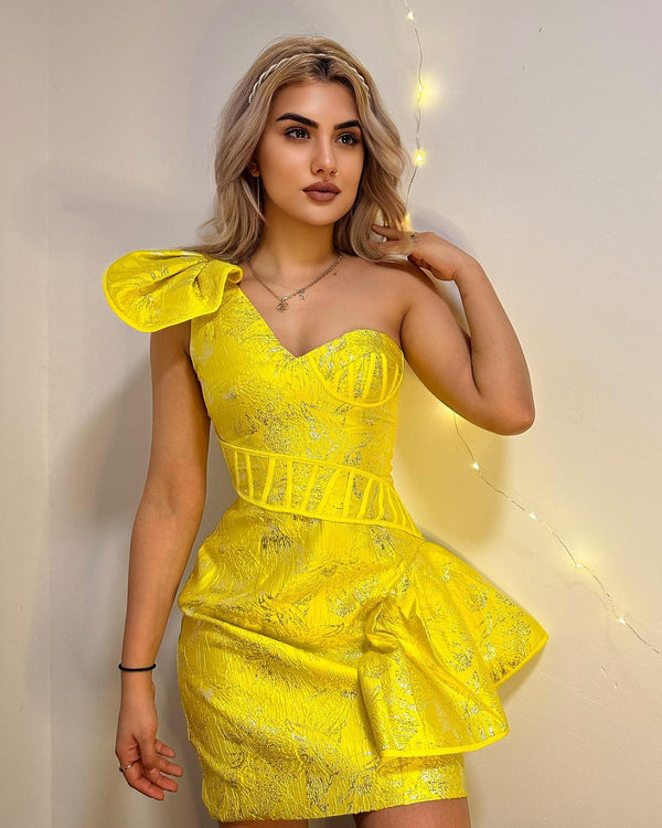 One Shoulder Sleeveless Frill Mini Bodycon Dress