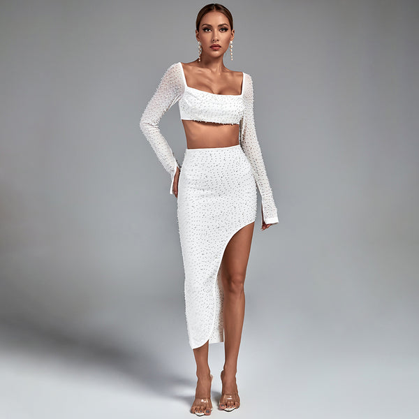 Strapless Sleeveless Pearl Chain Maxi Bodycon Dress HT951