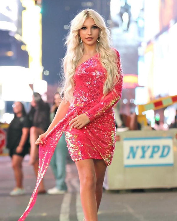 One Shoulder Rhinestone Mini Bandage Dress PH01214