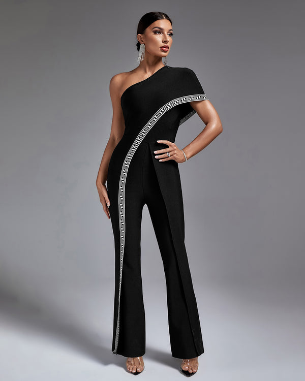 One Shoulder Asymmetrical Bandage Jumpsuit