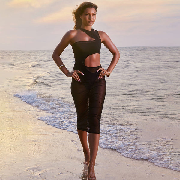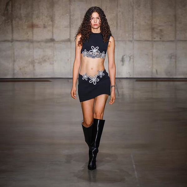 Crystal Five-leaf Flower Cutout Bandage Dress