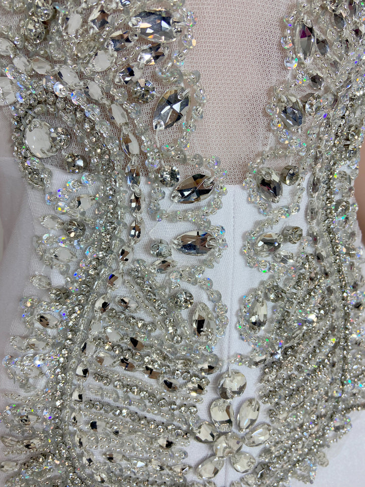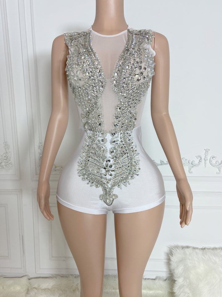 White Round Neck Sleeveless Mini Playsuit with Shorts Bottom
