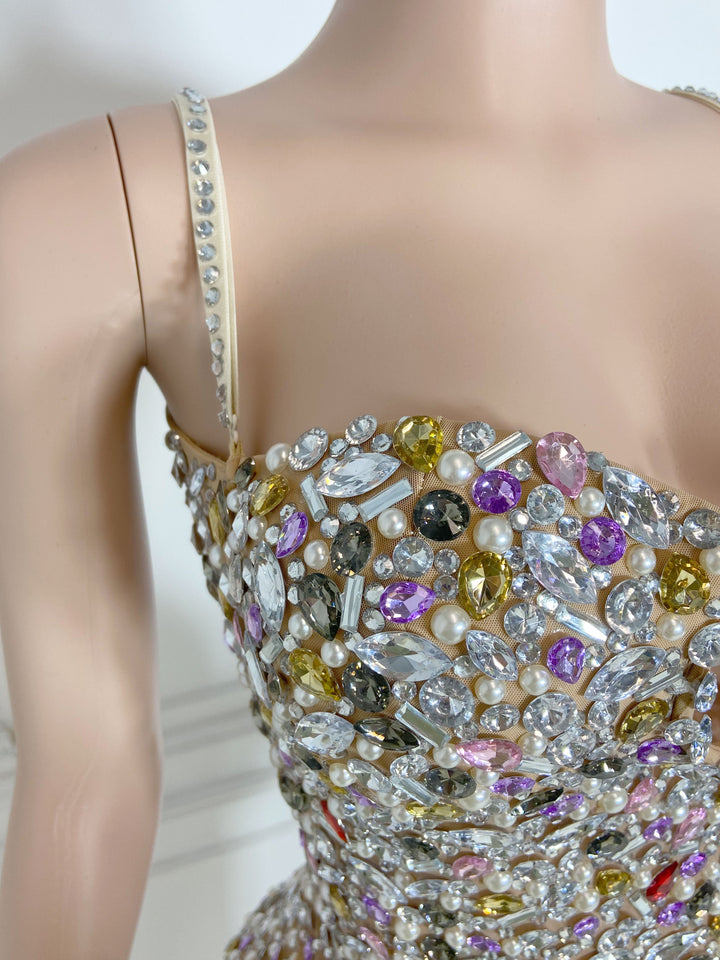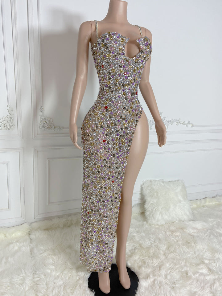 Multi Stretchy Mesh with Full Diamond Long Dress