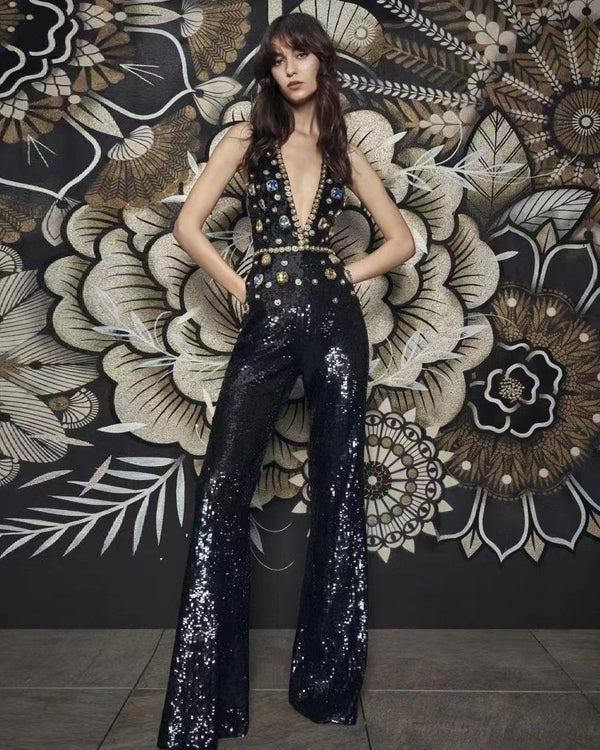 Halter Sleeveless Sequins Jumpsuit KLYF1069