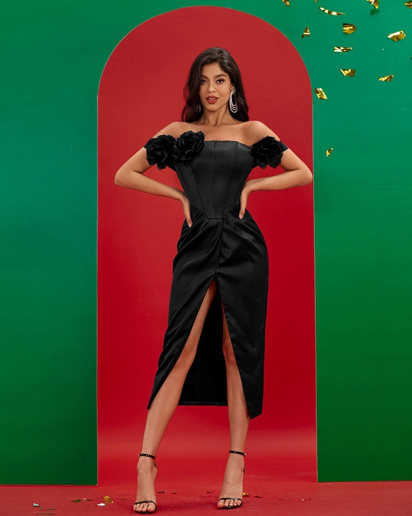 Strapless 3D Flowers Mermaid Maxi Dress