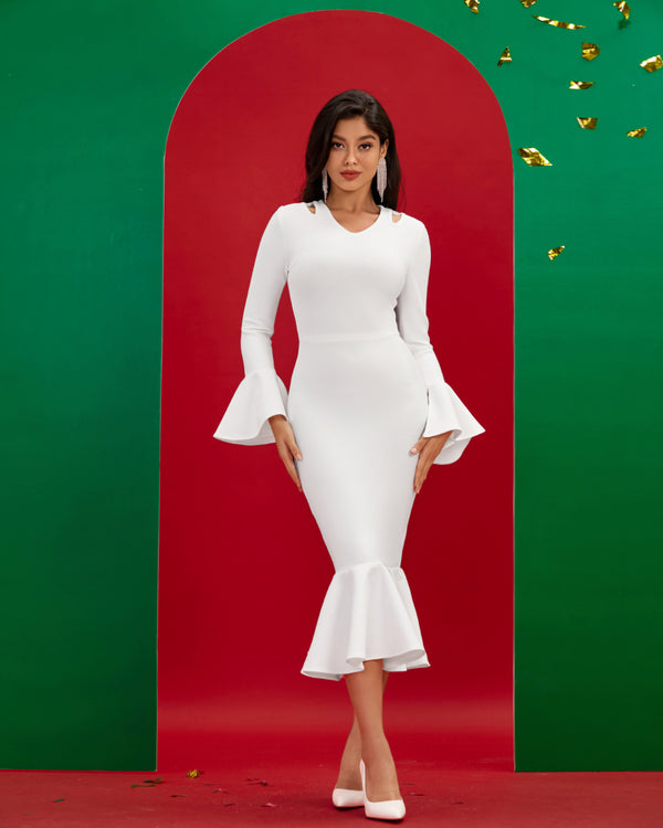 Asymmetric Lace Ruffled Midi Bandage Dress