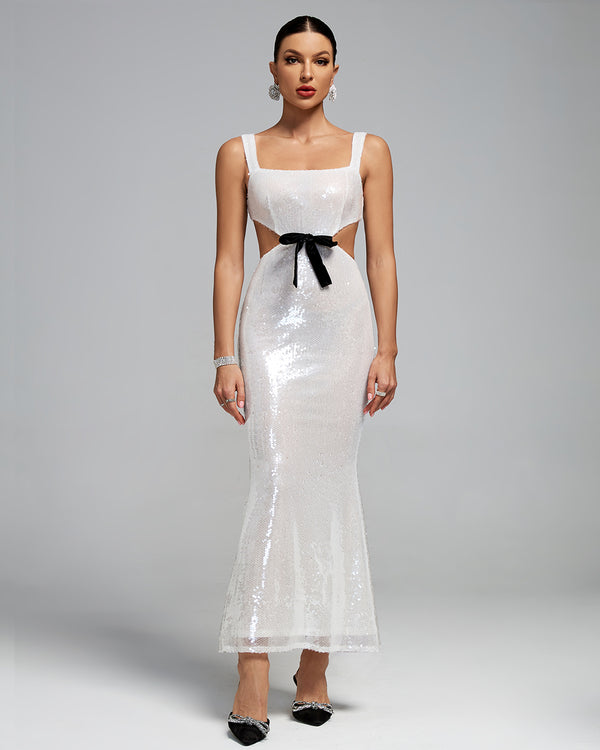 Off Shoulder Rhinestone Mesh Maxi Dress