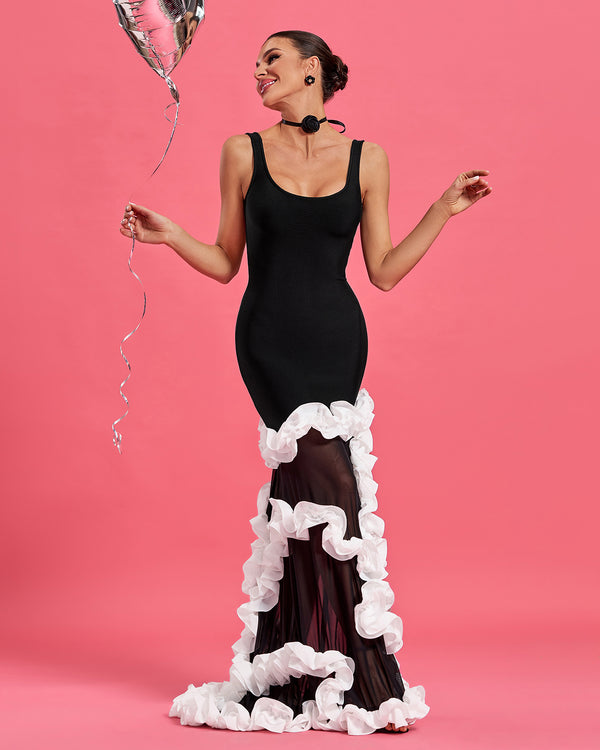 Asymmetric Lace Ruffled Midi Bandage Dress