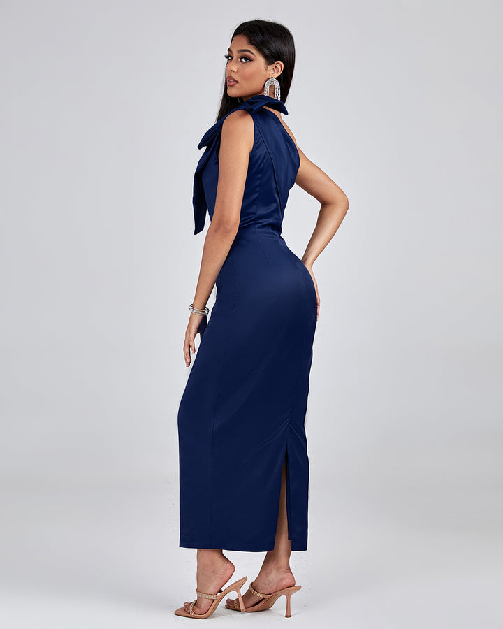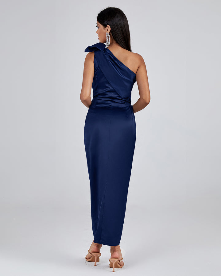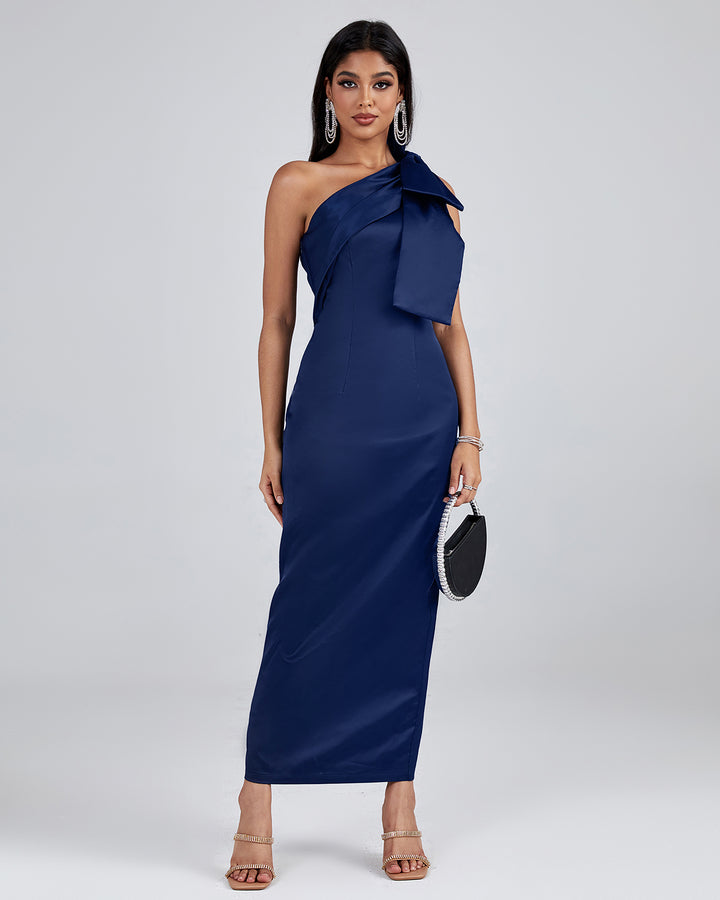Feel modern and confident wearing this One Shoulder Bowknot Gown. With its sleek design and eye-catching bowknot detail, this gown will make you the star of any event. Its one shoulder cut adds a unique touch and helps you stand out from the crowd. Look and feel stunning in this One Shoulder Bowknot Gown!