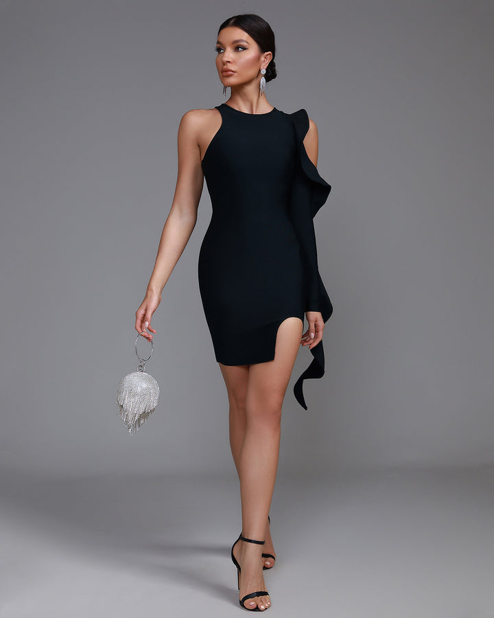 Asymmetric Ruffle-trim Mini Bandage Dress