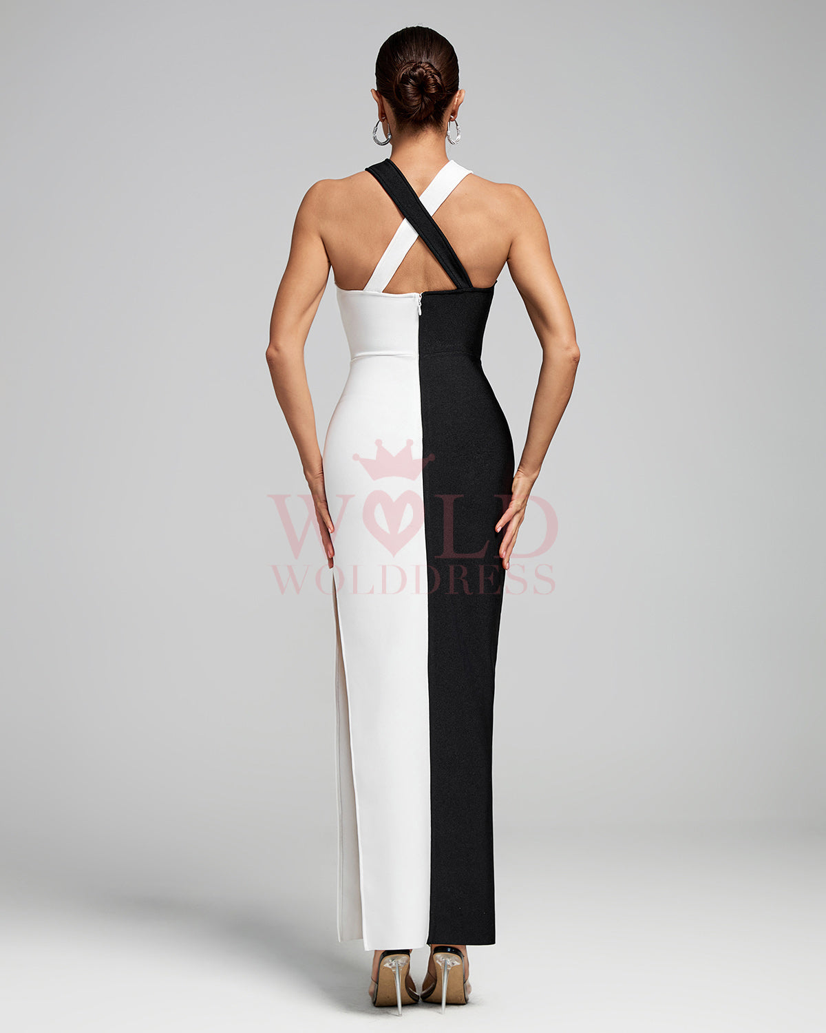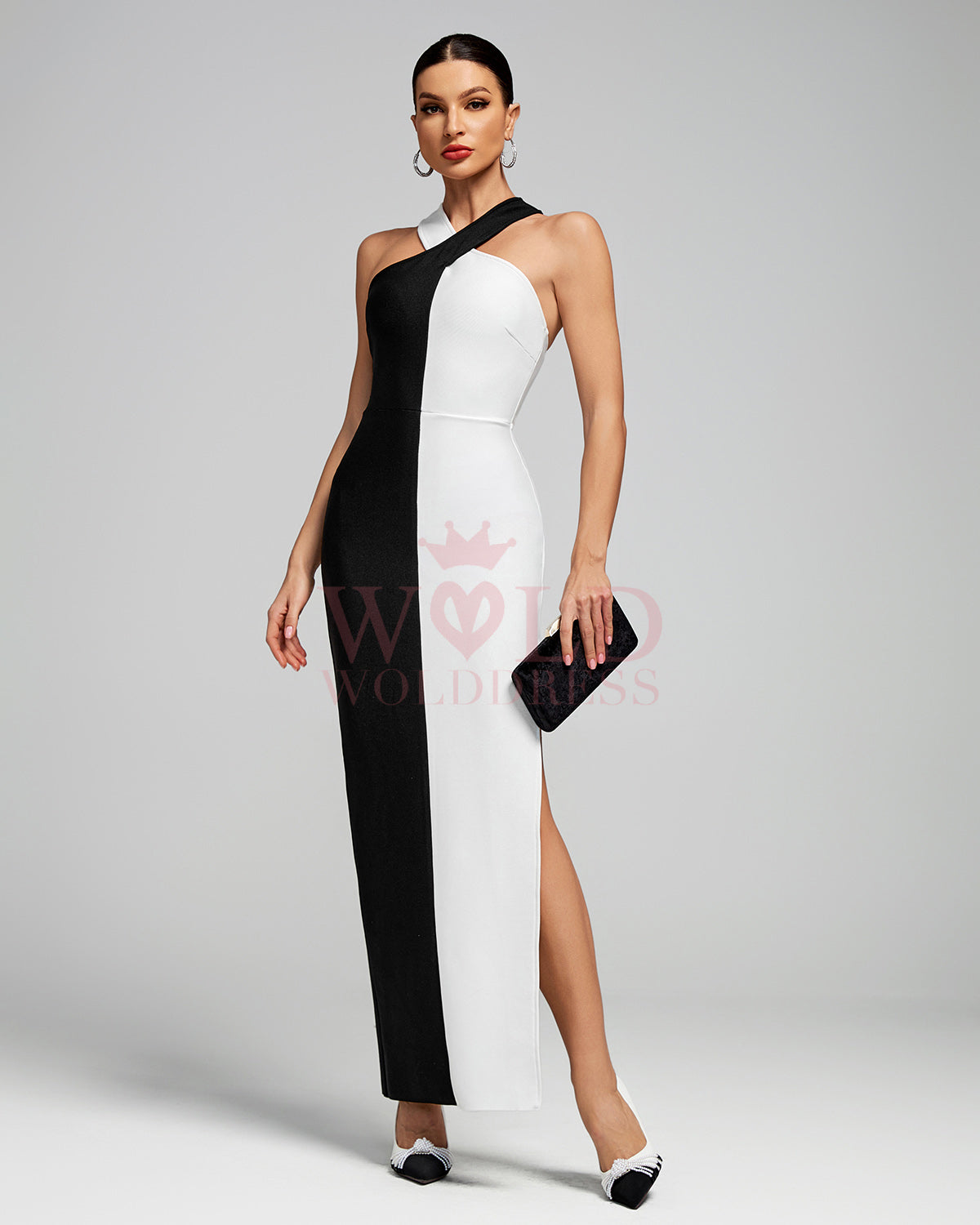 Black-White Cross Halter Neckline Bandage Dress