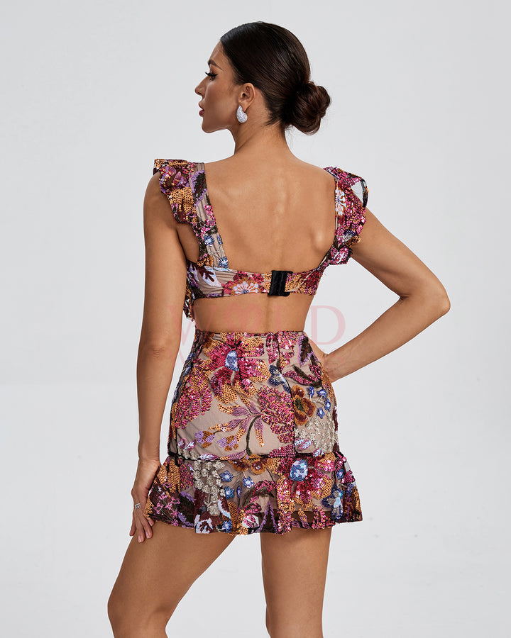 Dahlia Floral-Embellished Ruffle Mini Dress