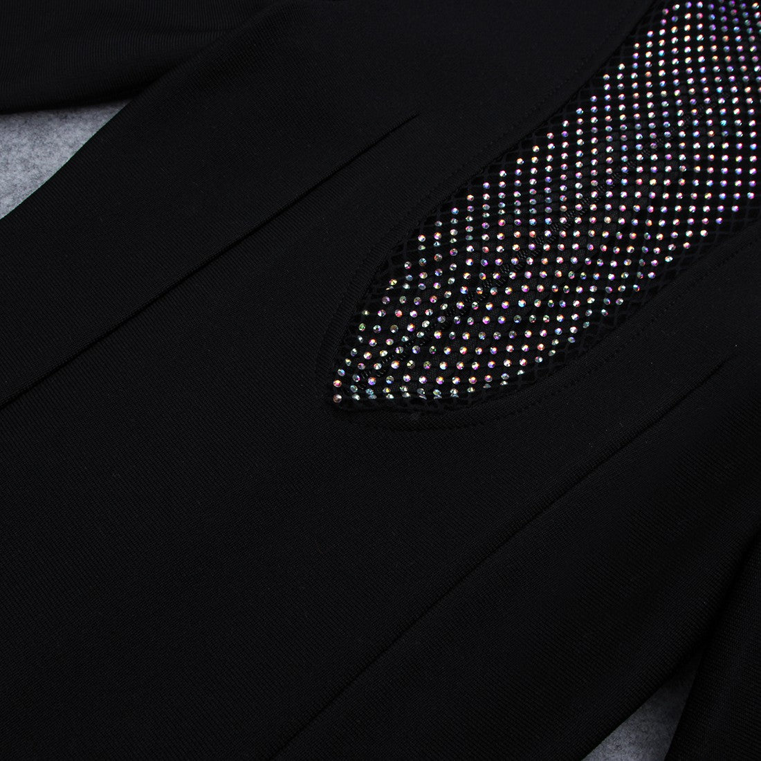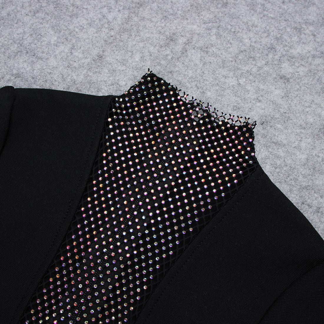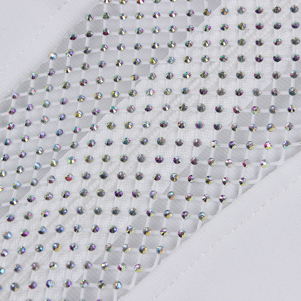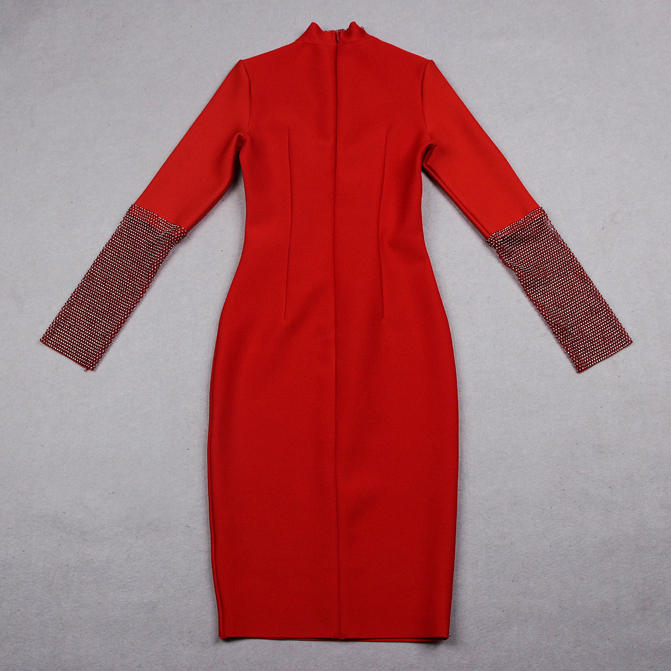 High Neck Long Sleeve Rhinestone Midi Bandage Dress