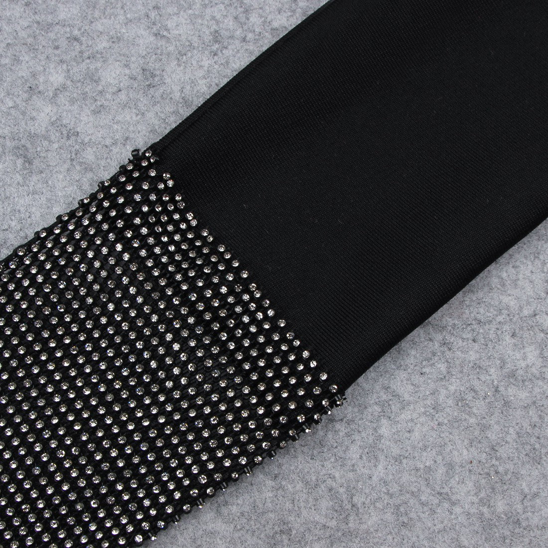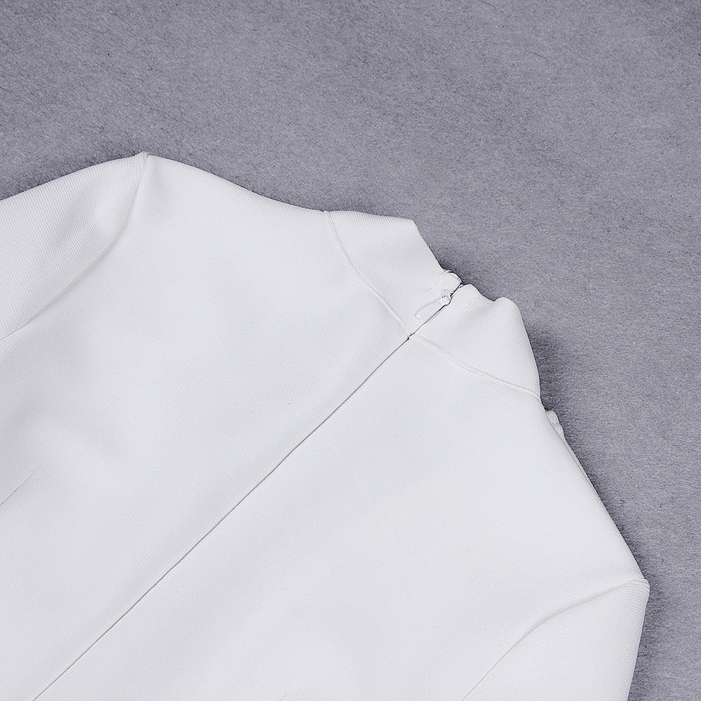 Make a statement in this exquisite High Neck Long Sleeve Rhinestone Midi Bandage Dress. Crafted with luxurious fabric and subtle rhinestone embellishments, this elegant garment will provide you with a sophisticated and exclusive look for any special occasion. Perfect for those who appreciate refined style and timeless beauty.