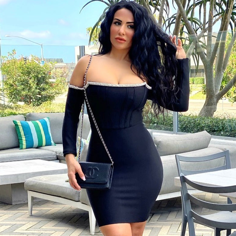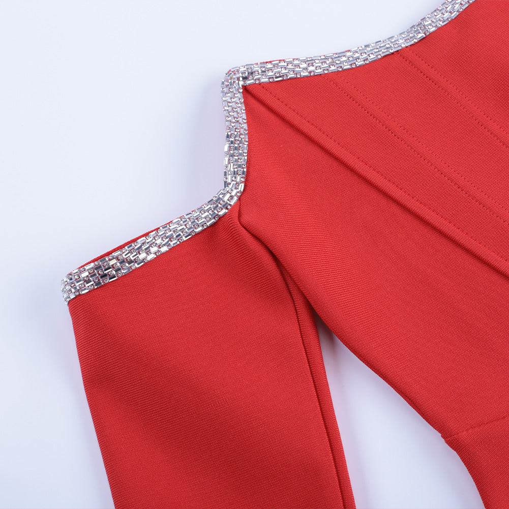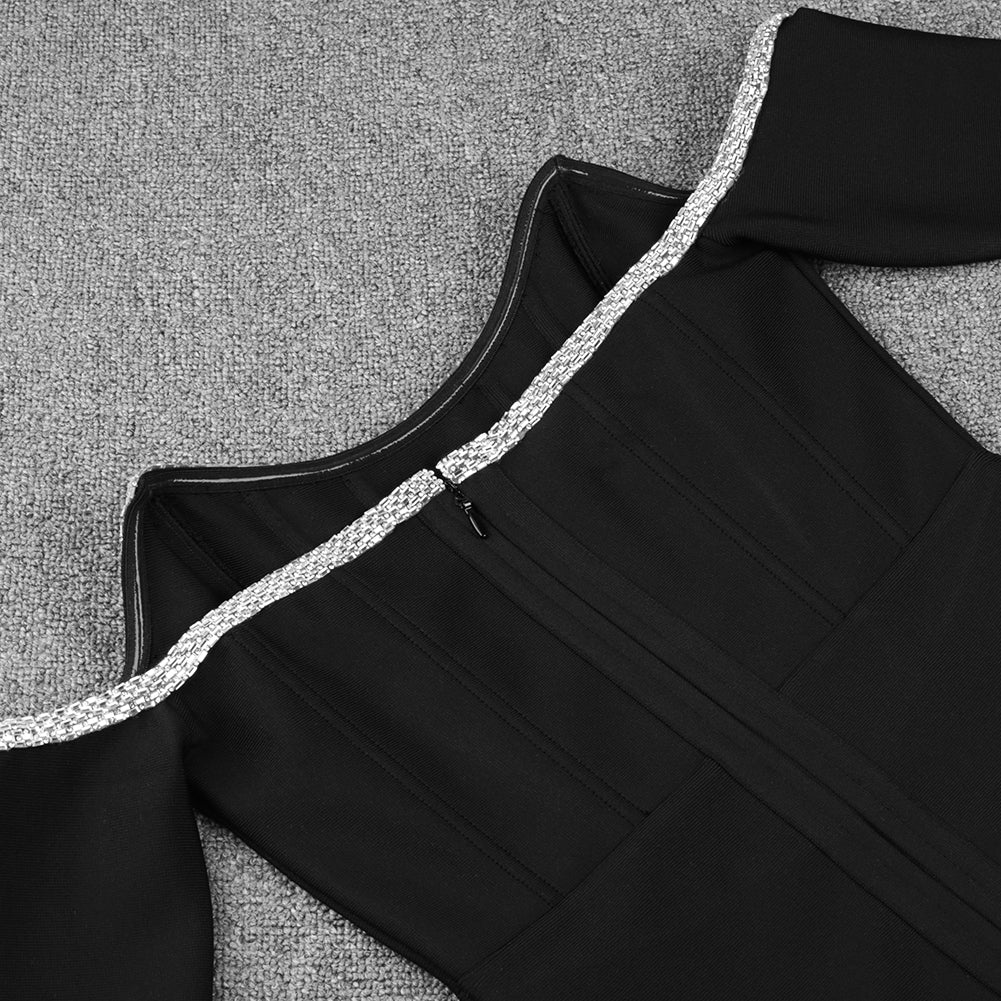 Off Shoulder Long Sleeve Drill Chain Mini Bandage Dress PP20017