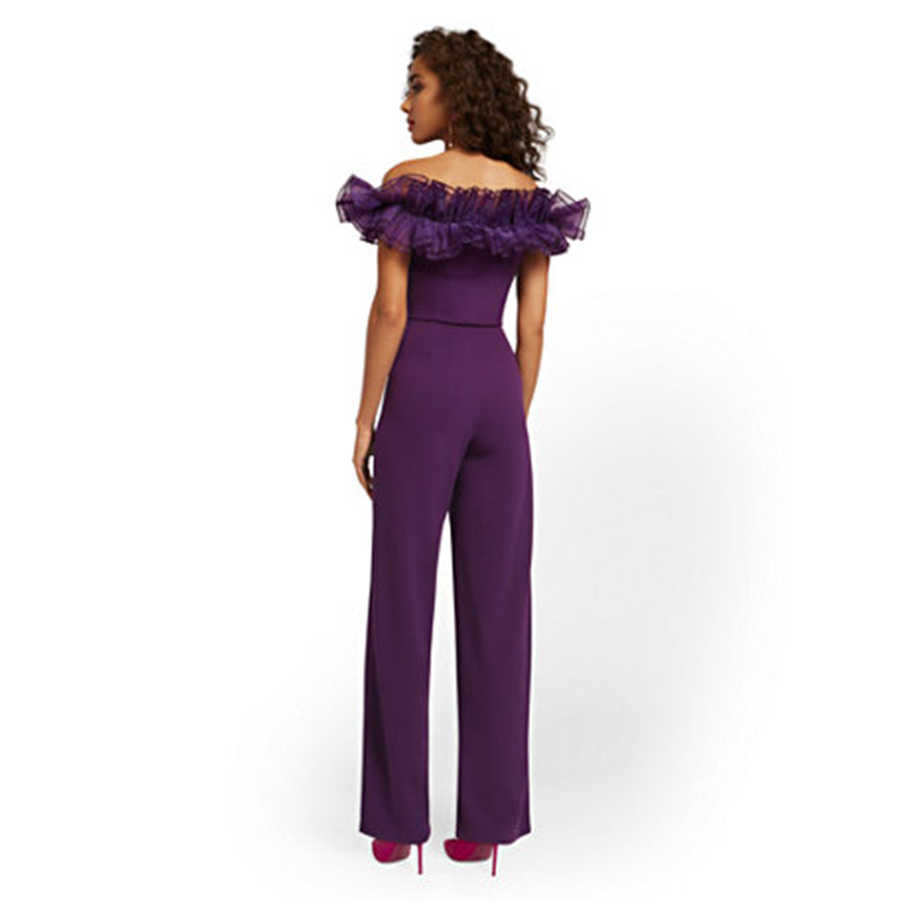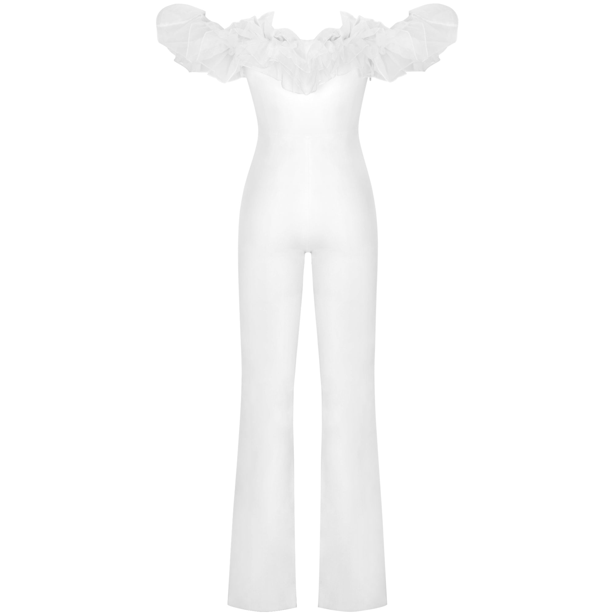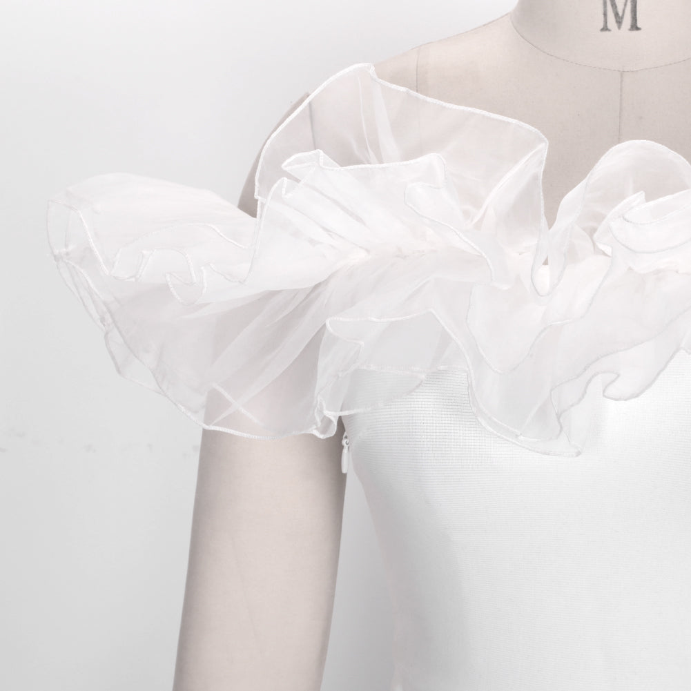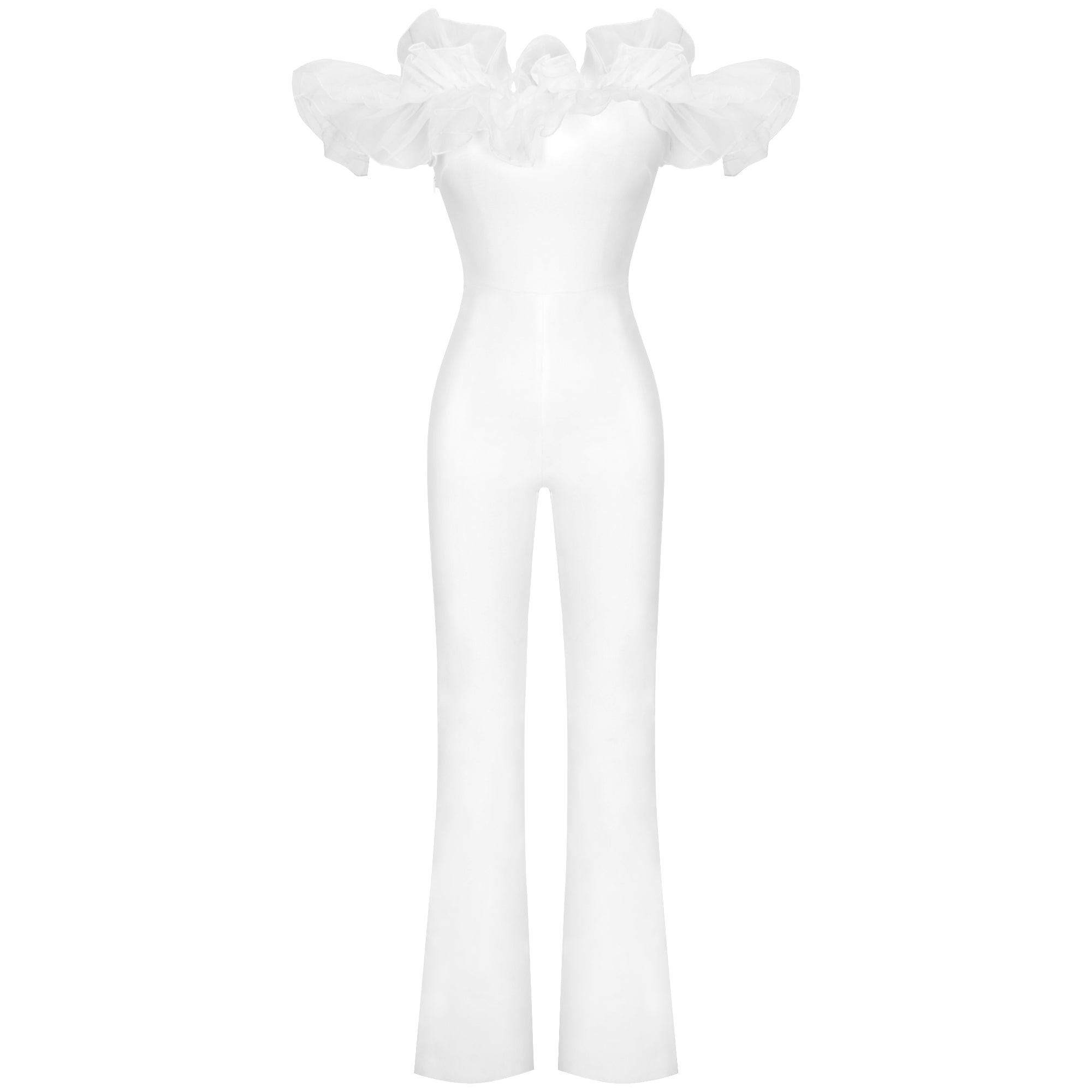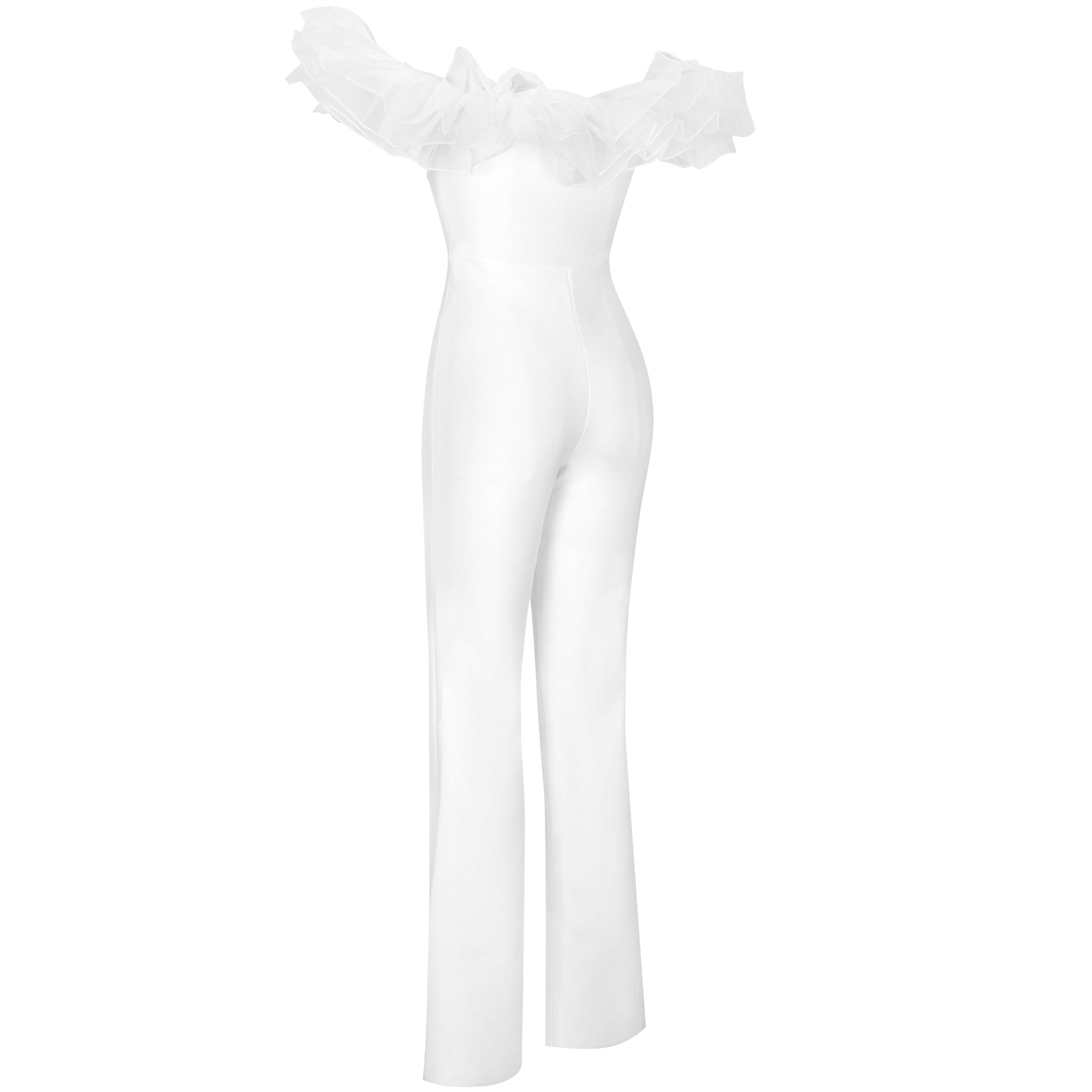 Off Shoulder Short Sleeve Frill Bandage Jumpsuit