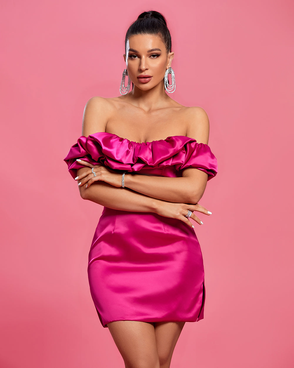 This Off Shoulder Distinctive Mini Dress is the perfect addition to any wardrobe - if you'd rather show your shoulders than your shins, that is. With its off the shoulder style, you'll be 'shoulder shimmy' ready in no time! Get ready to turn heads with this unique dress!