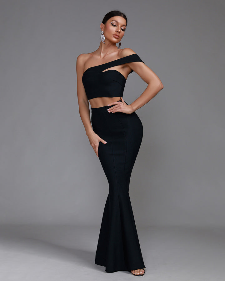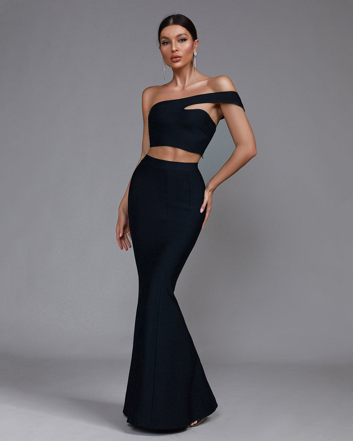 One Shoulder Crop Top & Maxi Skirt Set