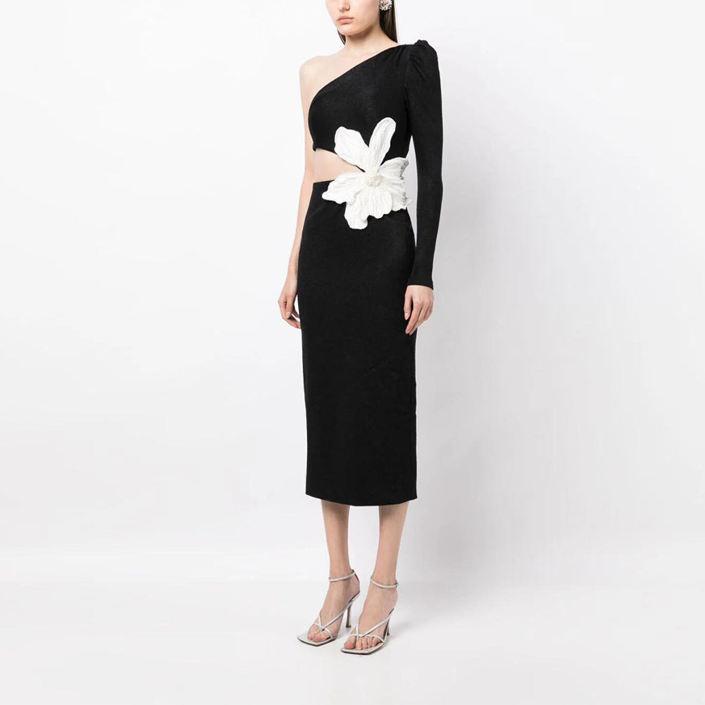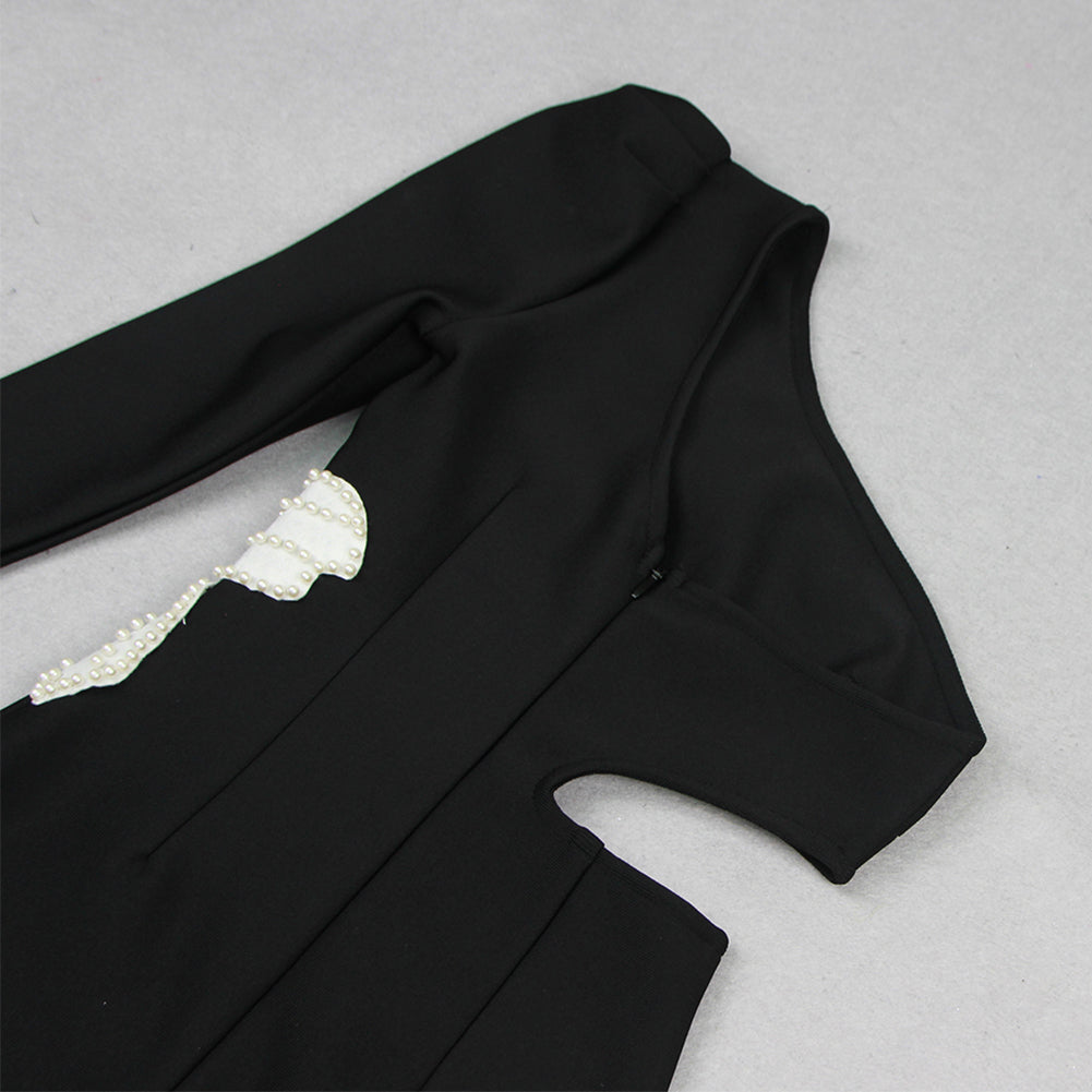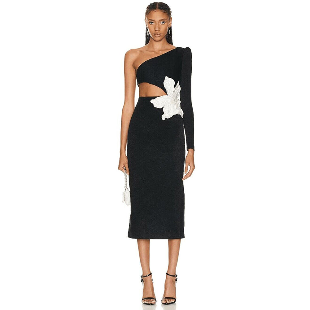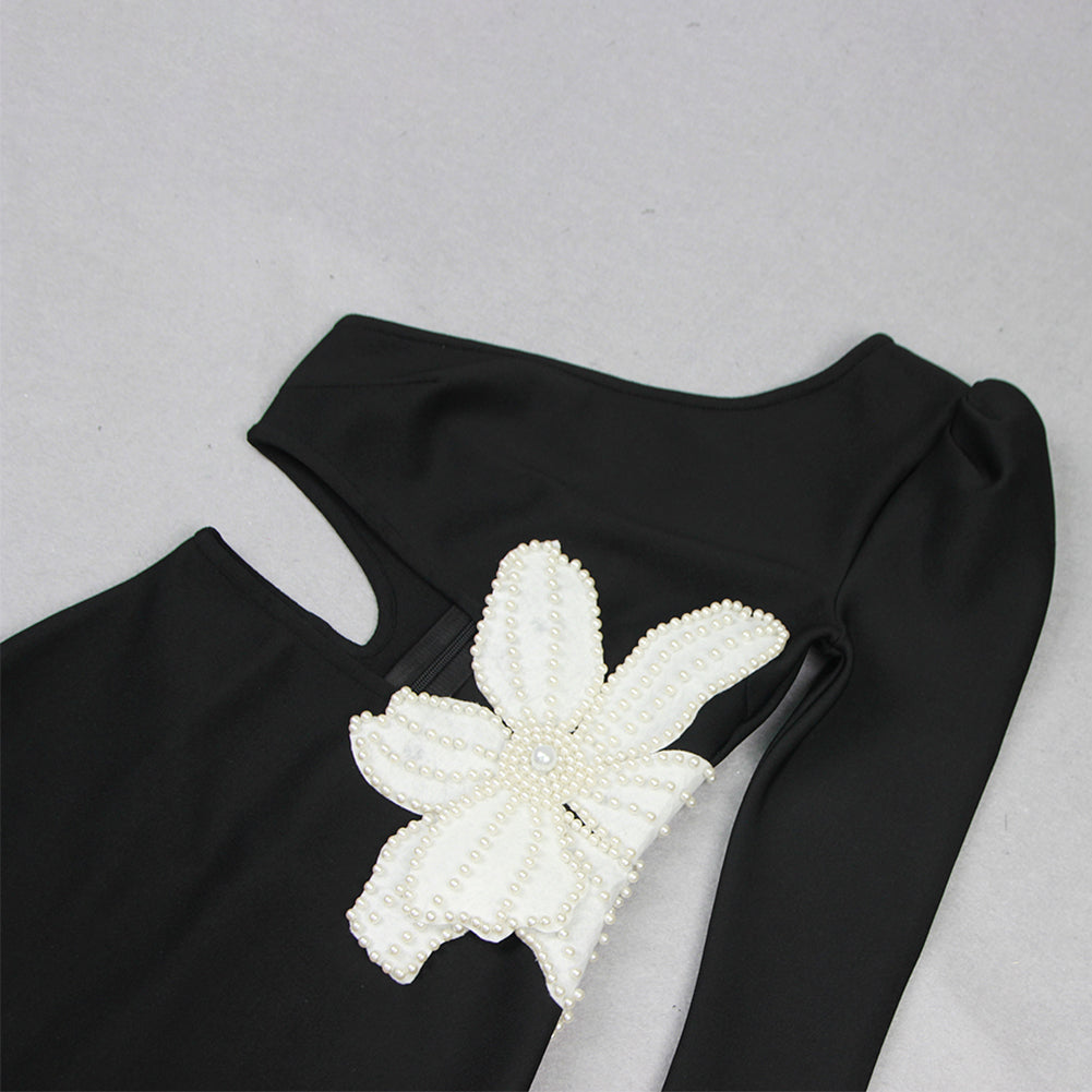 One Shoulder Pearl Midi Bandage Dress HL9407