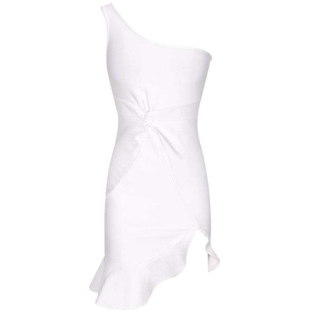 One Shoulder Twist Ruffle Trim Asymmetrical Hem Dress