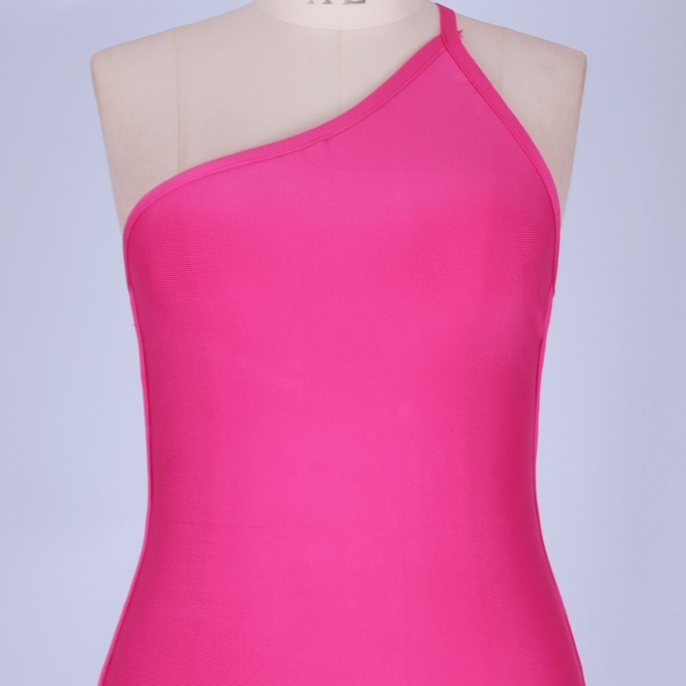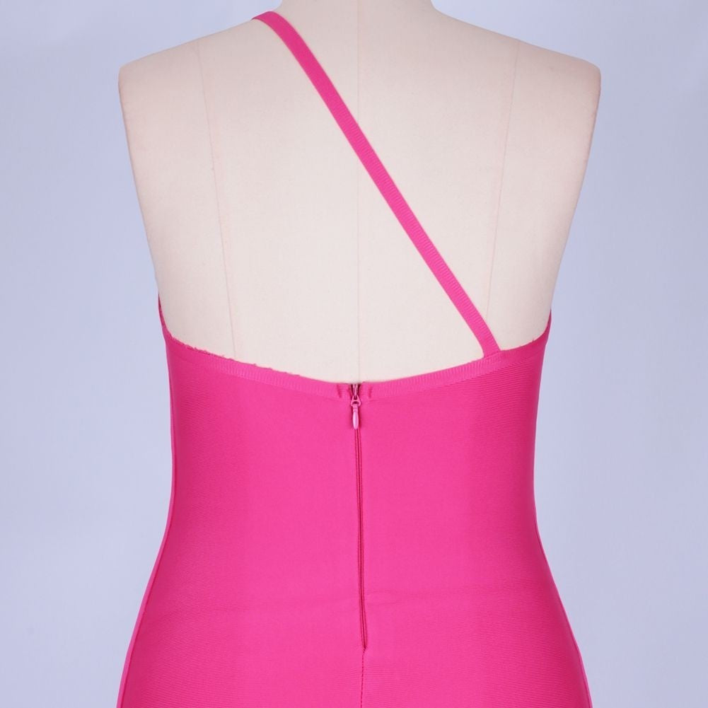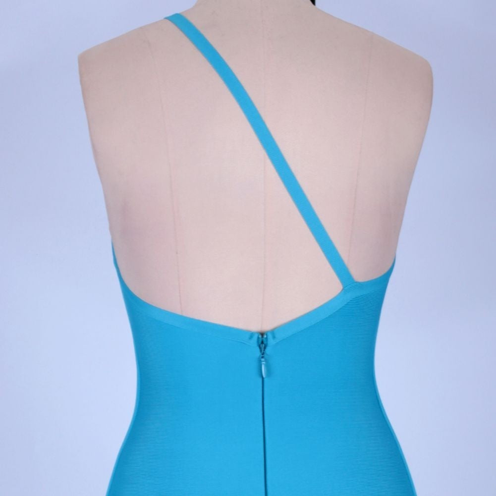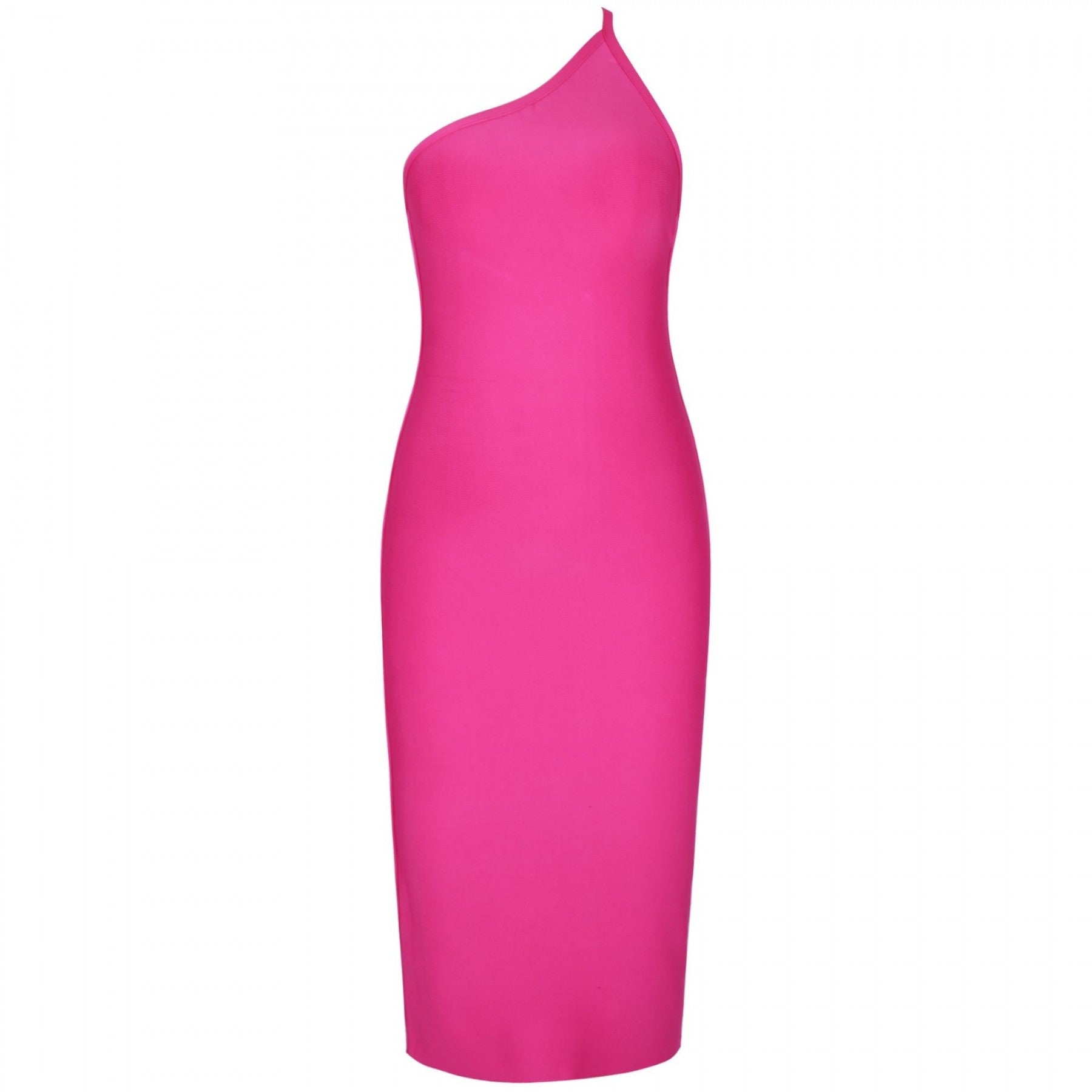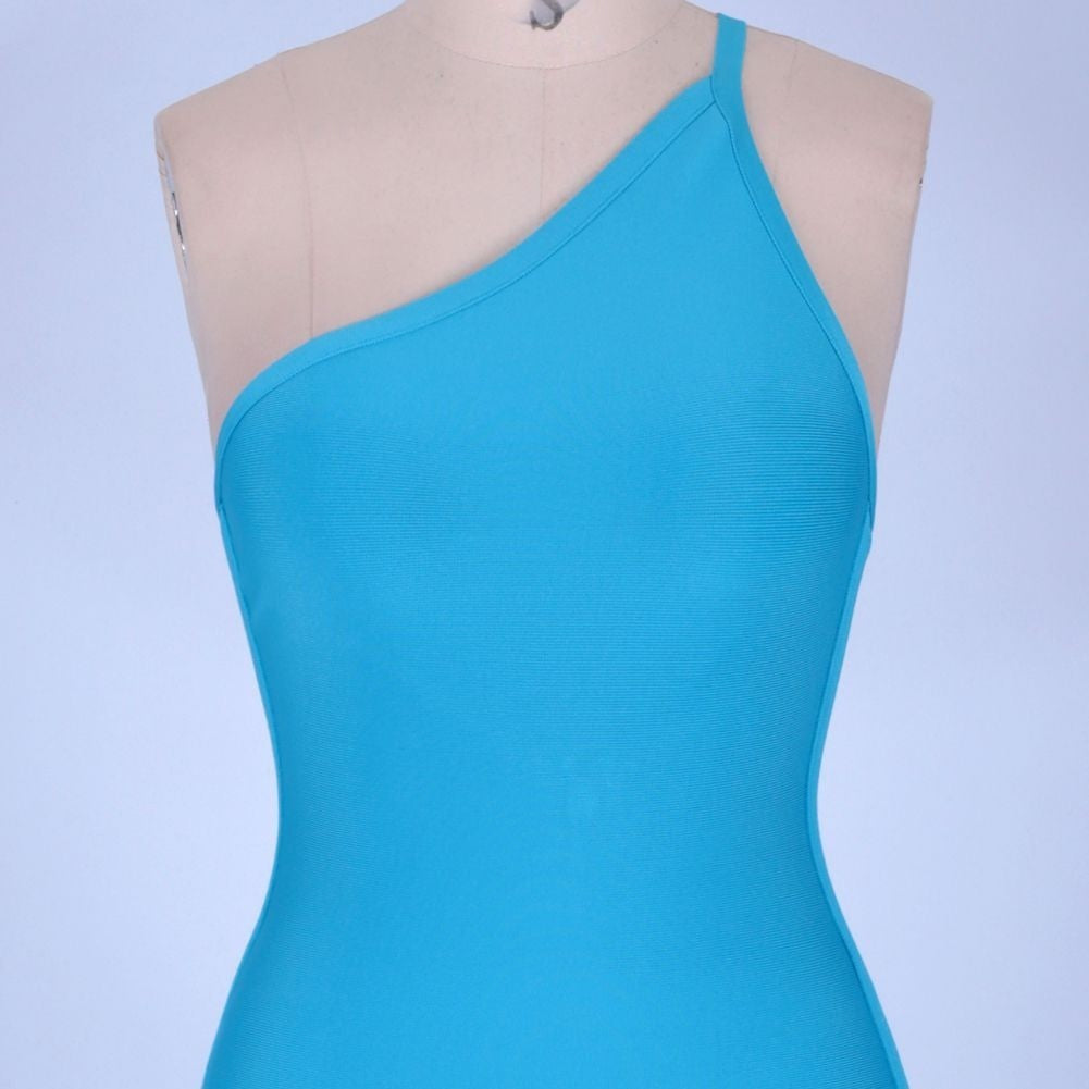 One Shoulder Asymmetrical Midi Bandage Dress PPHK054