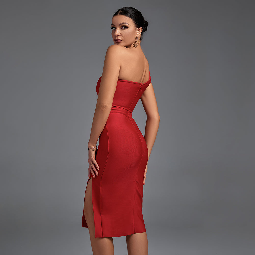 Take a stylish leap with this Sleeveless Asymmetrical Slit Bandage Dress! Featuring a daring design, this dress will make you feel bold and modern. The slit accentuates your features and the asymmetrical cut will guarantee you stand out. Take the risk, and show off your best self!