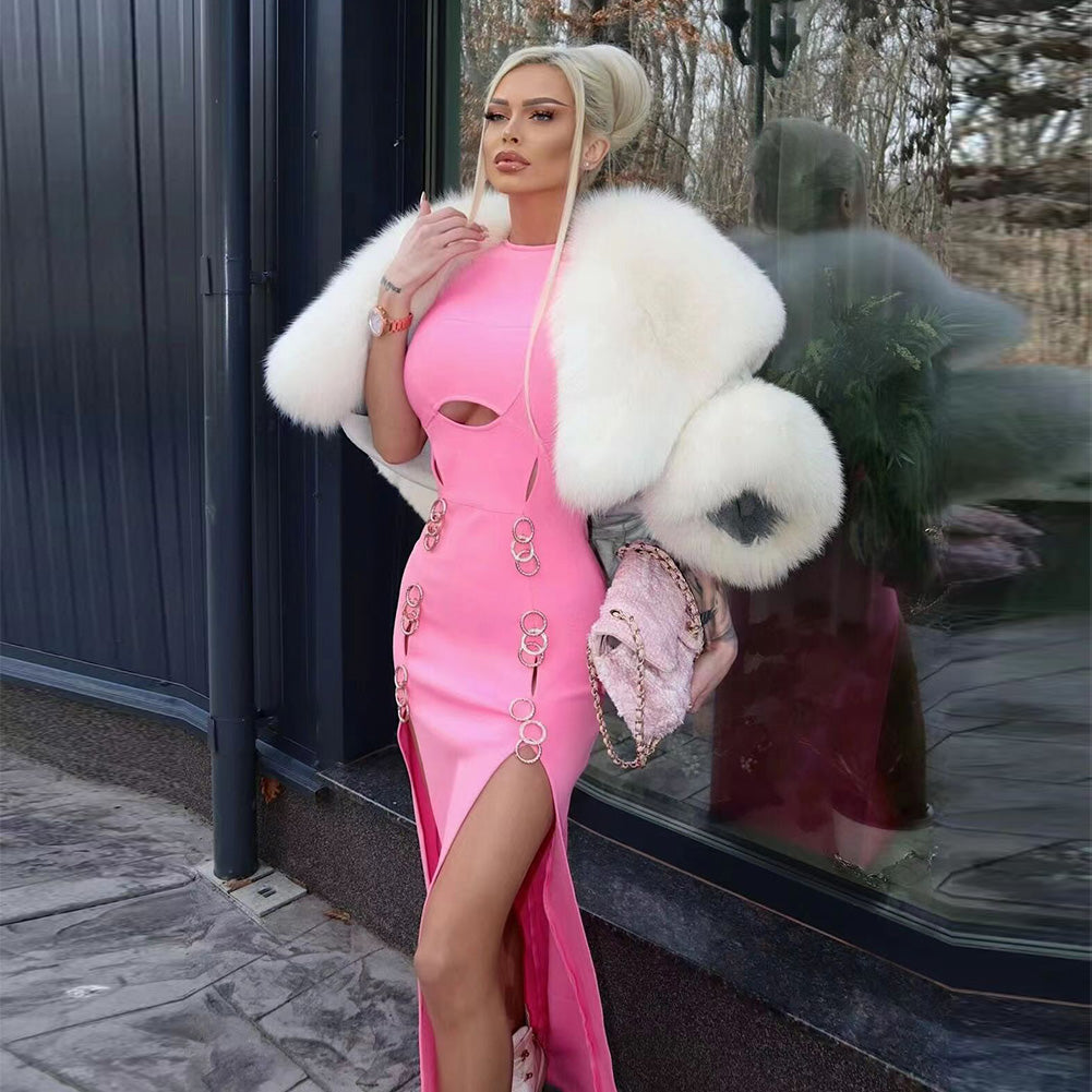 Round Neck Sleeveless Hollow out Maxi Bandage Dress HL9203