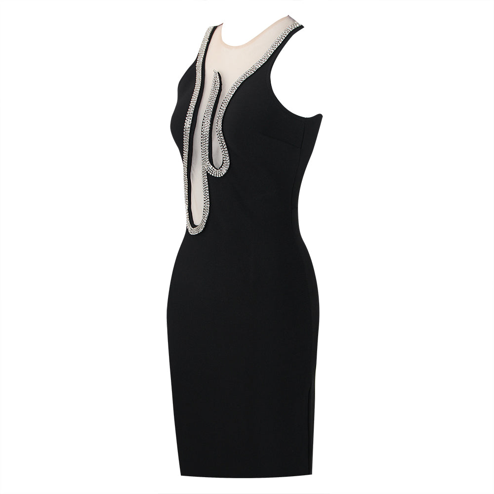 Look no further than this Crystal Flame Mini Bandage Dress for the perfect party look! You'll be sizzling in this hot number, with its signature curve-hugging fabric and sparkling crystals sure to set any room ablaze! It's a surefire way to get hearts racing and heads turning!