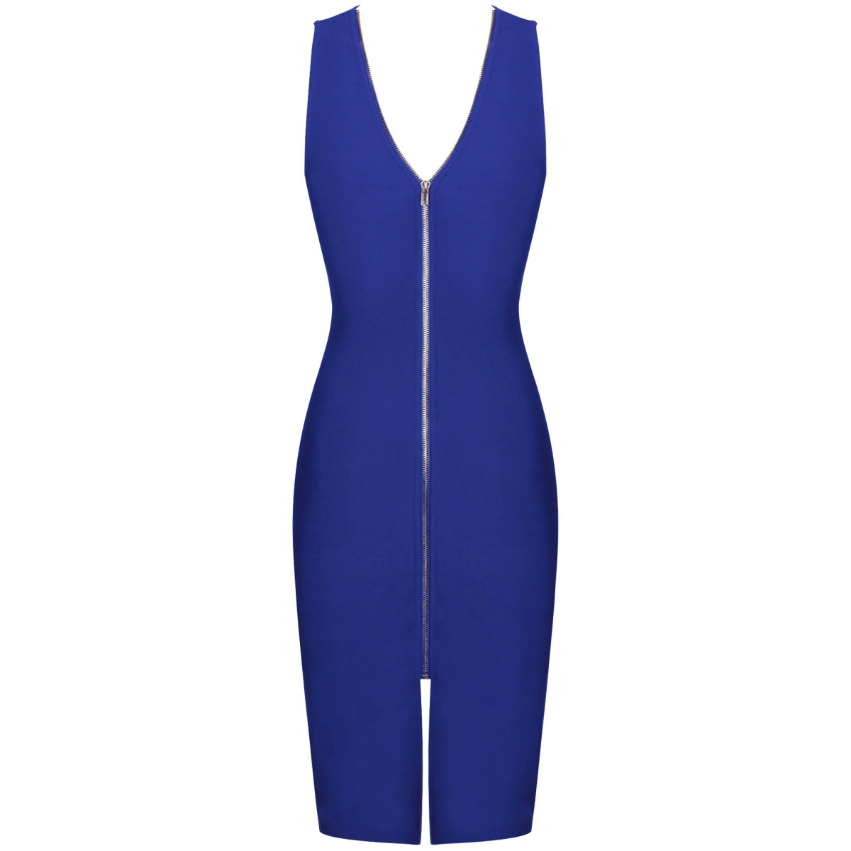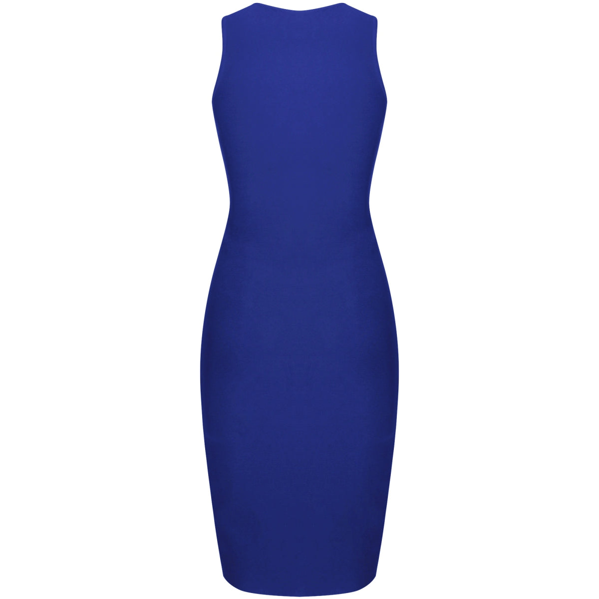 Achieve effortless elegance in this Round Neck Sleeveless Plain Over Knee Bandage Dress. Its timeless silhouette and understated details are sure to elevate your look with style. Perfect for special occasions and everyday wear.