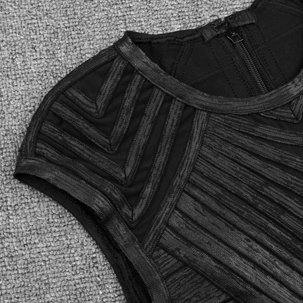 Round Neck Sleeveless Striped Mini Bandage Dress PZ19252