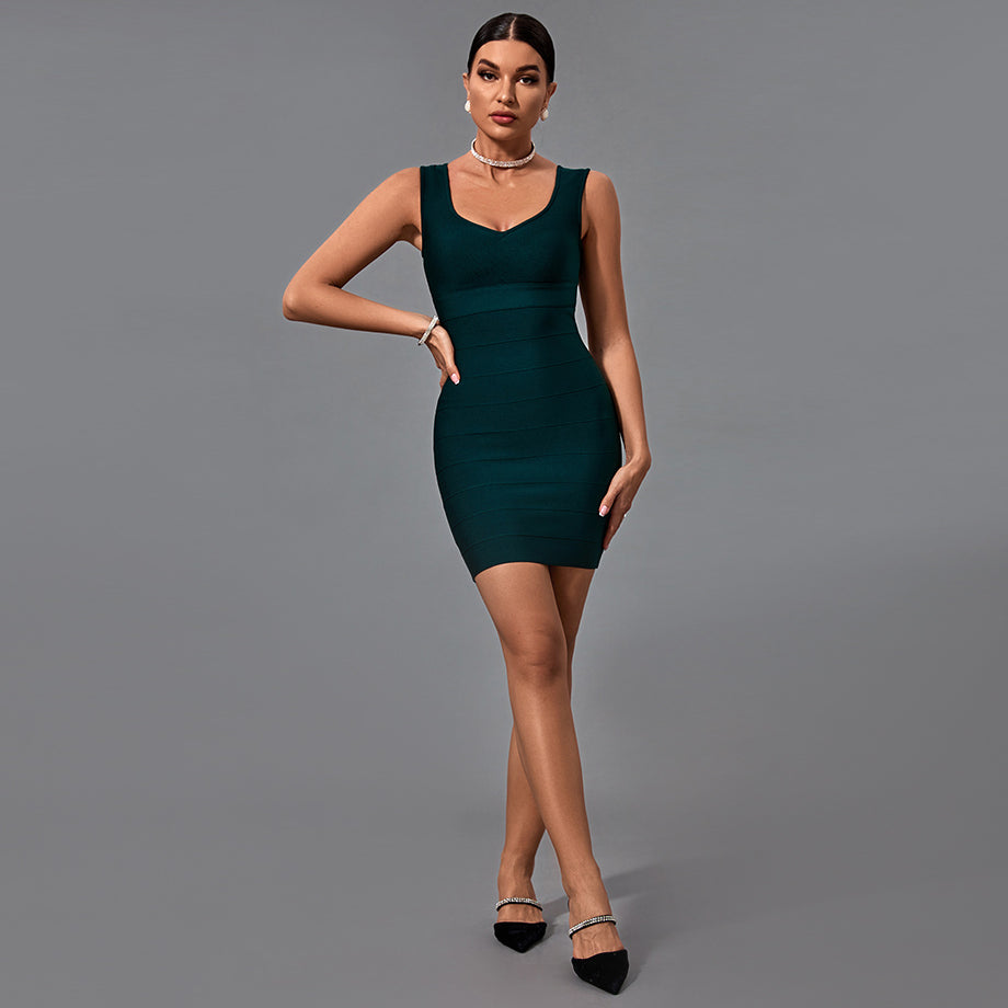 Square Collar Sleeveless Striped Mini Bandage Dress