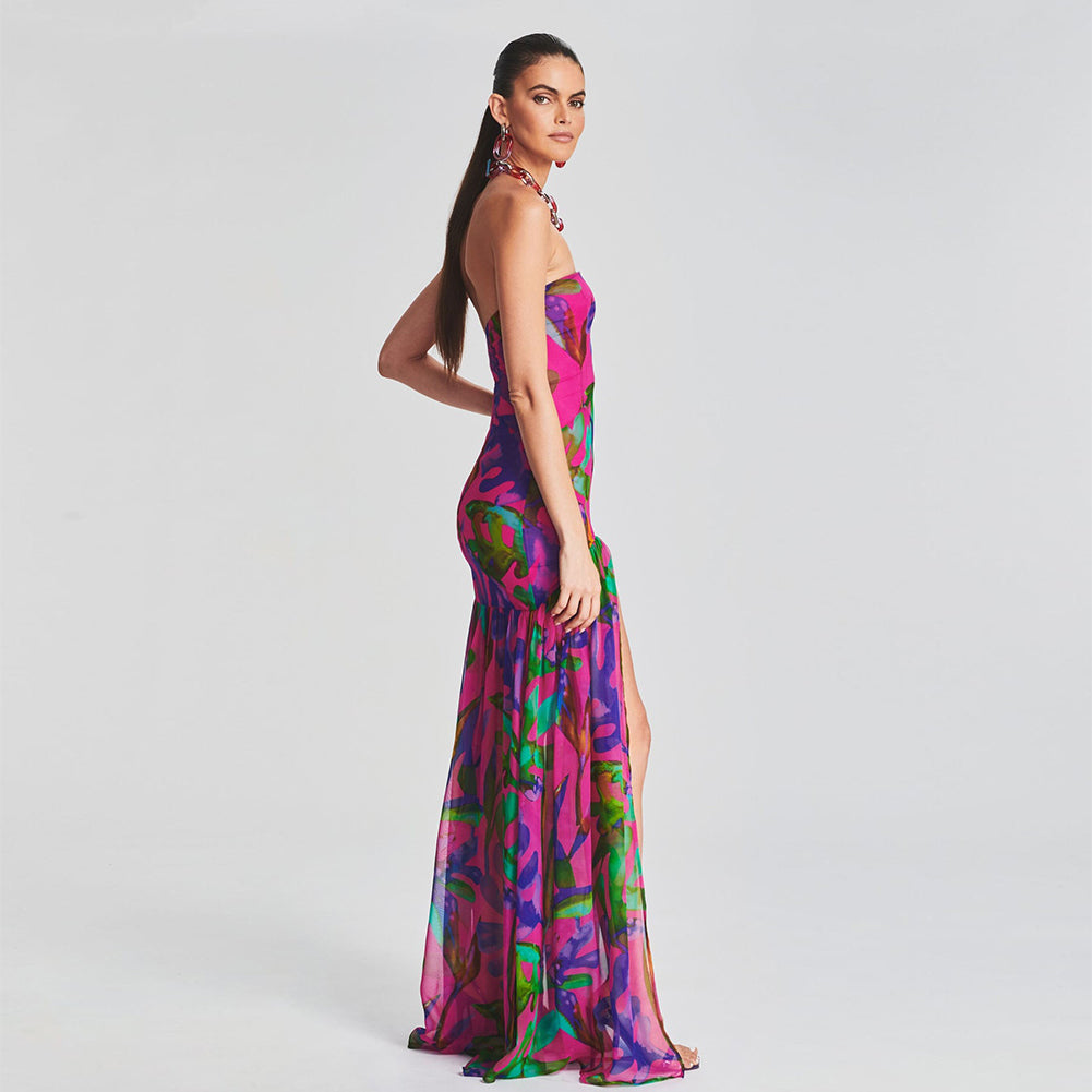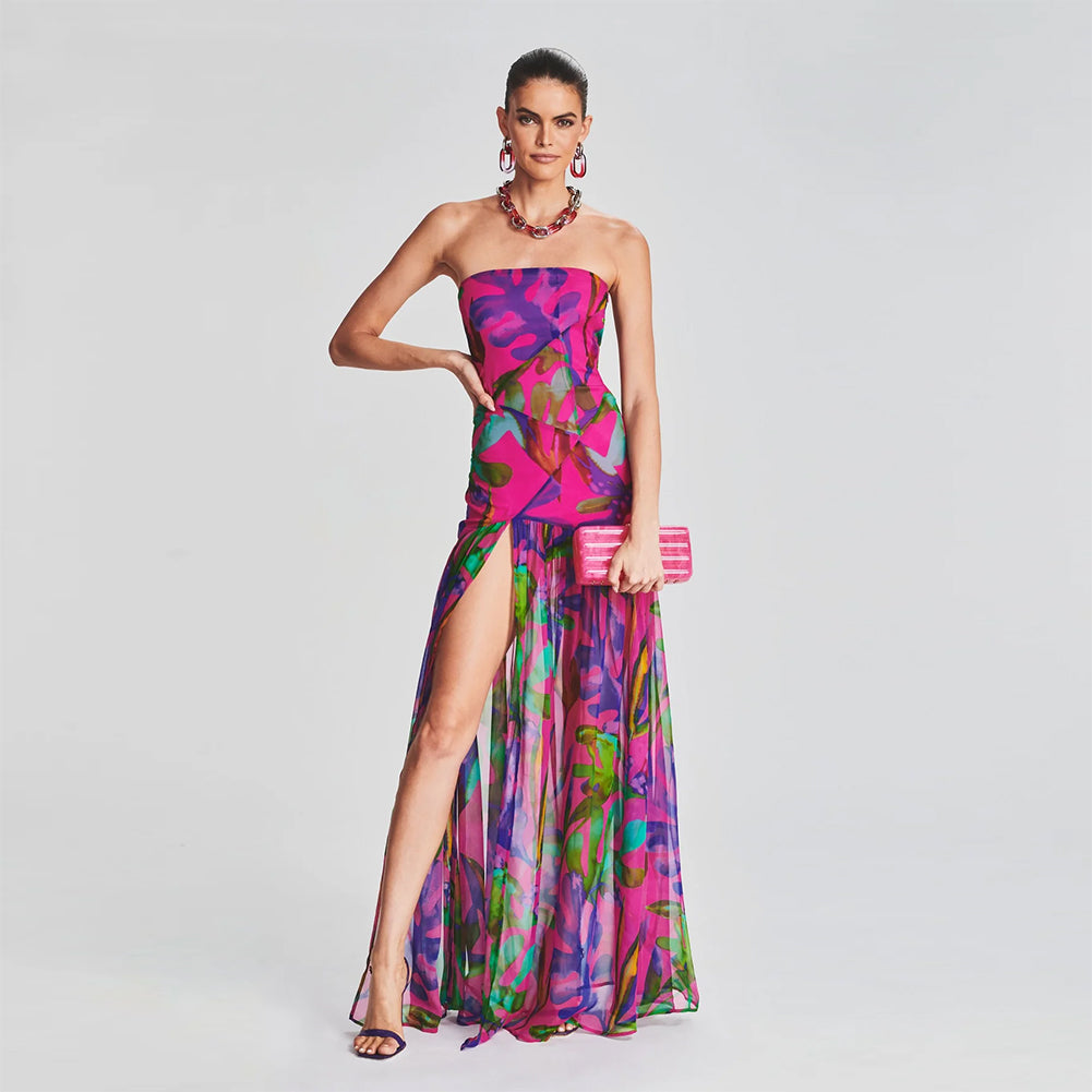Strapless Sleeveless Side Slit Maxi Bodycon Dress KLYF840