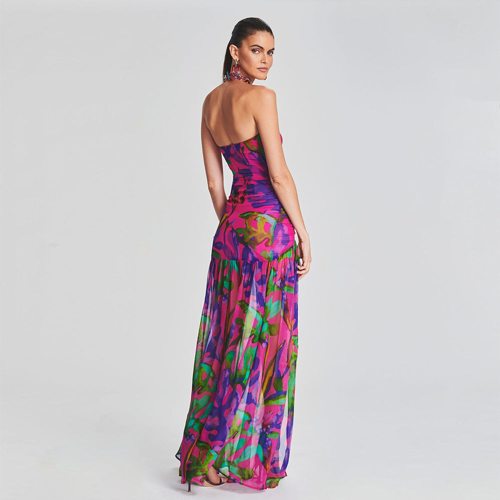 Achieve a timelessly elegant look with this Strapless Sleeveless Side Slit Maxi Bodycon Dress. Crafted from luxurious material, this dress features a sleek strapless bodice, side slit, and maxi-length skirt to flatter your figure and bring a touch of sophistication to any outing.