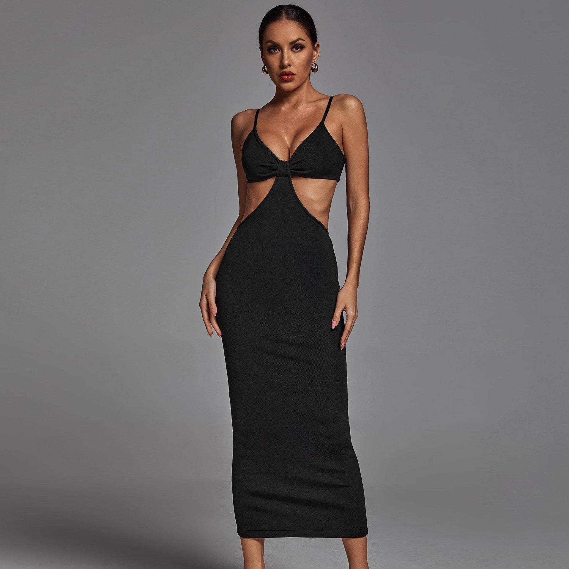 Feel glamorous and seductive in this Strappy Exposed Waist Bandage Dress. The innovative design features an alluring mix of intricate straps, structured cuts and figure-hugging fabric that will flatter your curves and enhance your natural beauty. Exclusively designed to make you stand out from the crowd, this dress is the perfect choice for any special occasion.