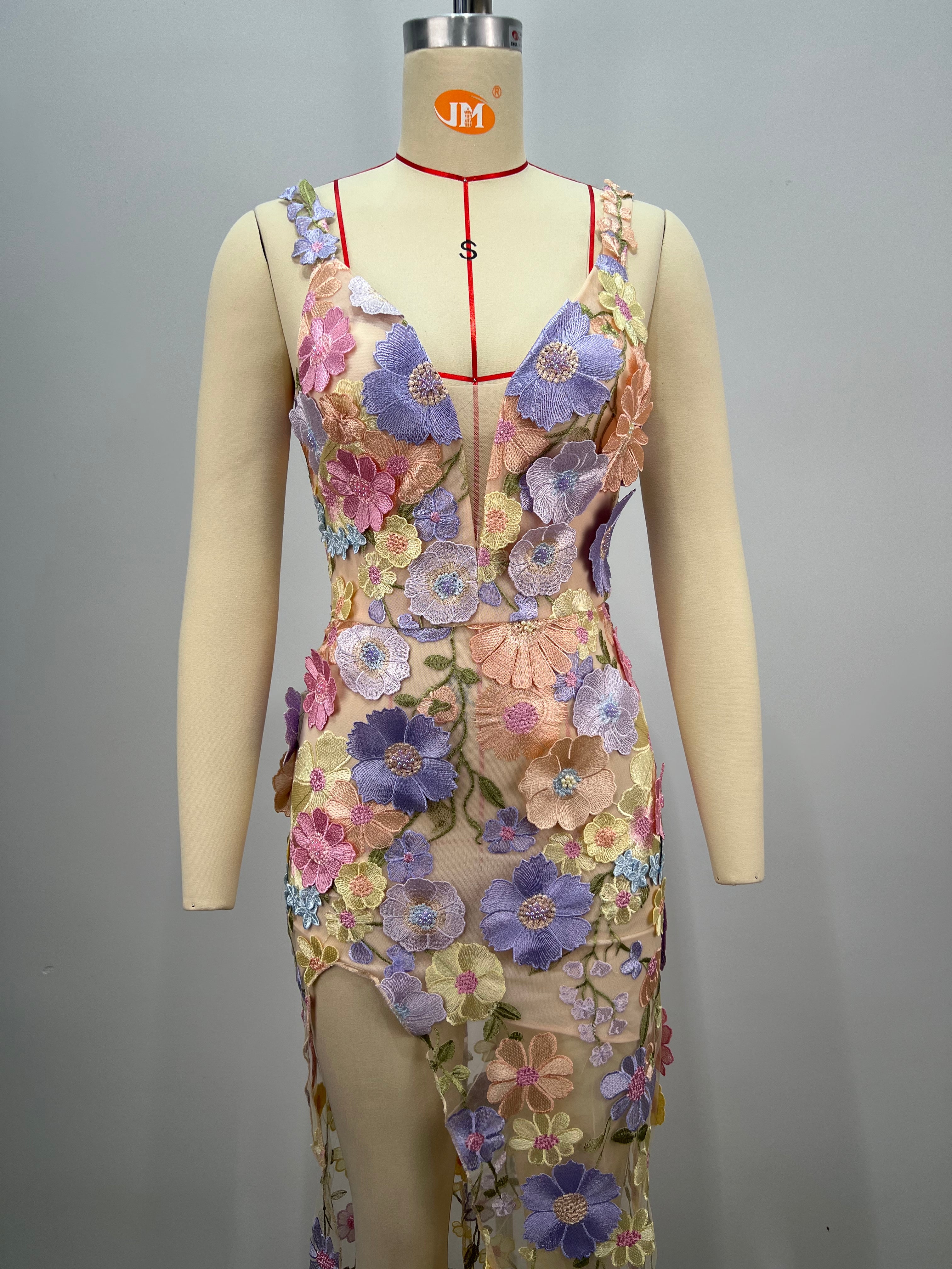 Floral-Embellished Maxi Bodycon Dress