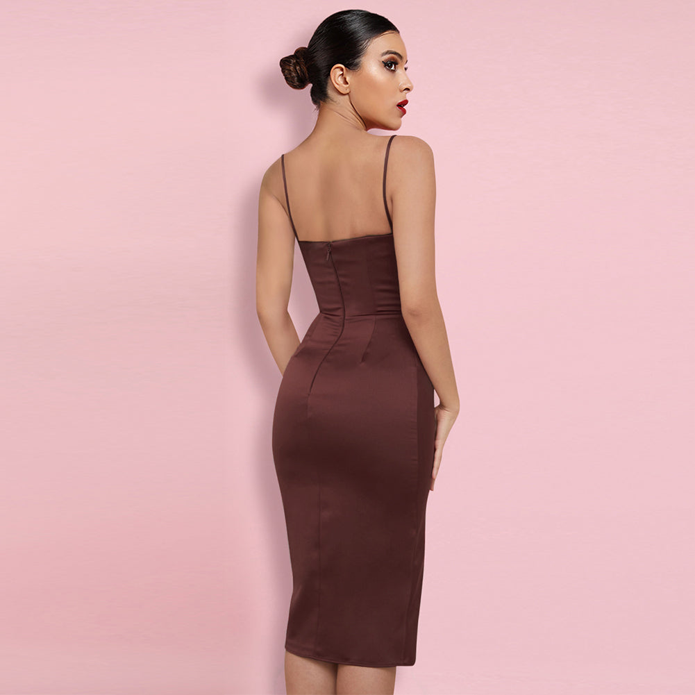 Strappy Sleeveless Plain Over Knee Bodycon Dress