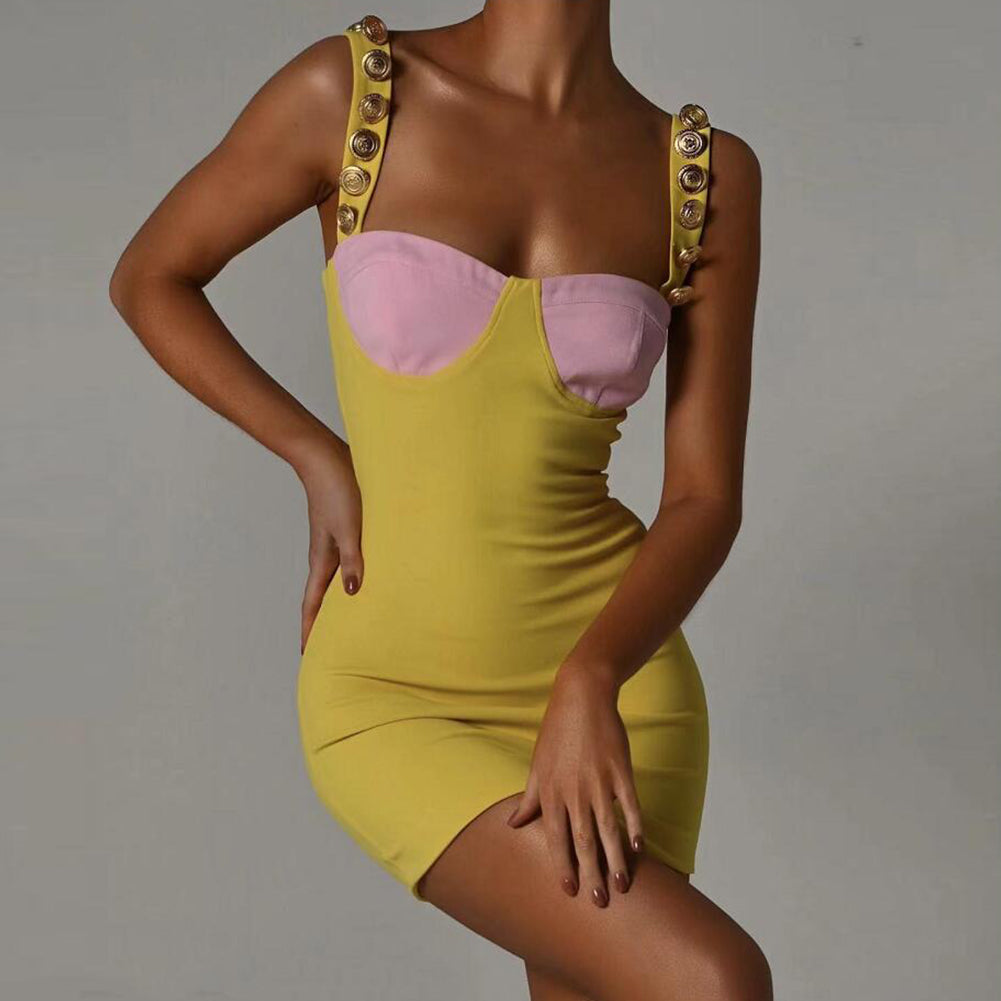 Strappy Sleeveless Splicing Mini Bandage Dress