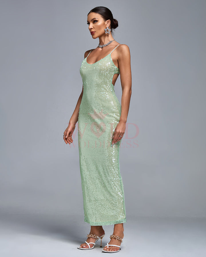 Open Back Sequin Bodycon Maxi Cami Dress