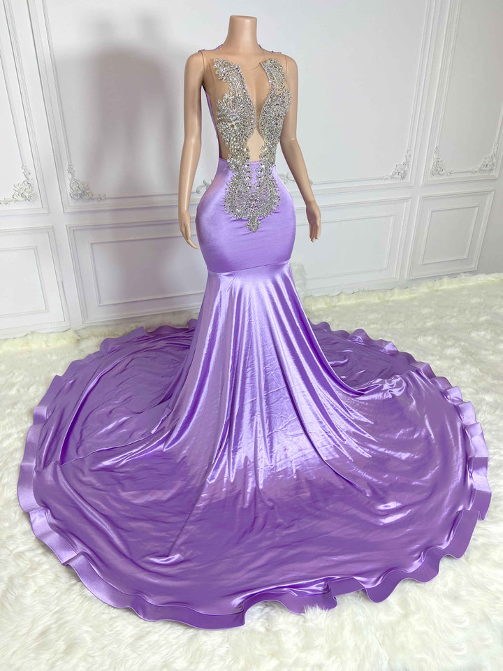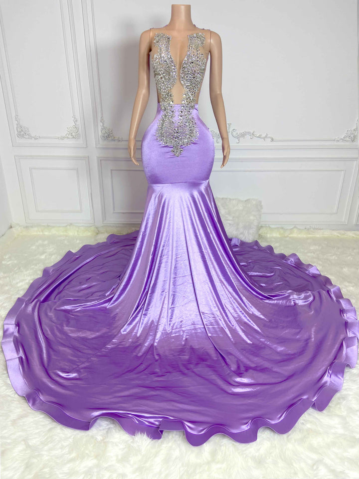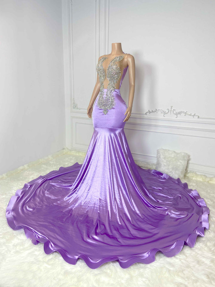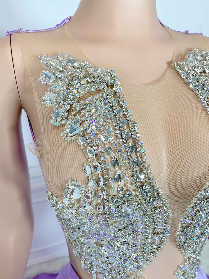 Purple Hollow Out and Rhinestone Sleeveless Maxi Gown