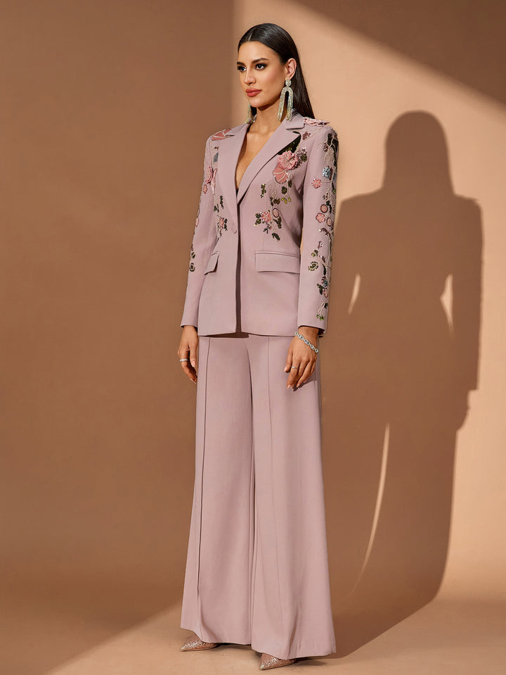 With its couture details, the Sequin Floral Embroidery Fall Suit merges tailored structure with sparkling embroidery, offering a fashionable upgrade to women's clothing and unique formal outfits.