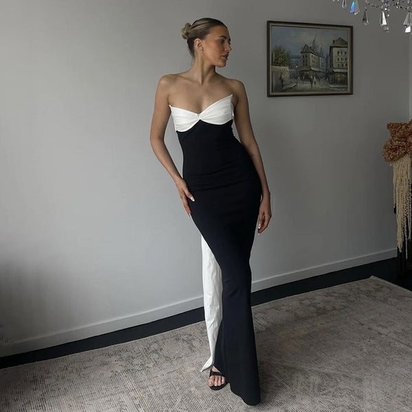 Ensemble bandage mi-long sans manches fendu sans bretelles
