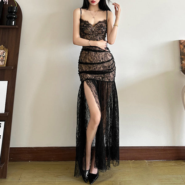 Strap Wrap Lace Corset Velvet Maxi Dress