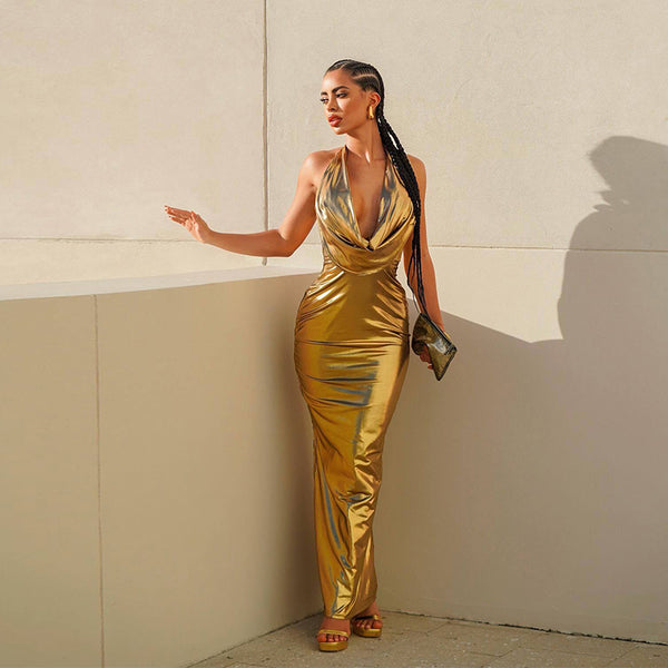 Robe moulante maxi froissée sans manches à bretelles HB7796