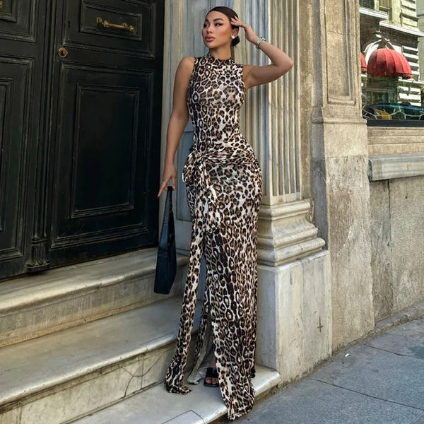 Robe moulante maxi à fleurs sans manches à bretelles HI1409