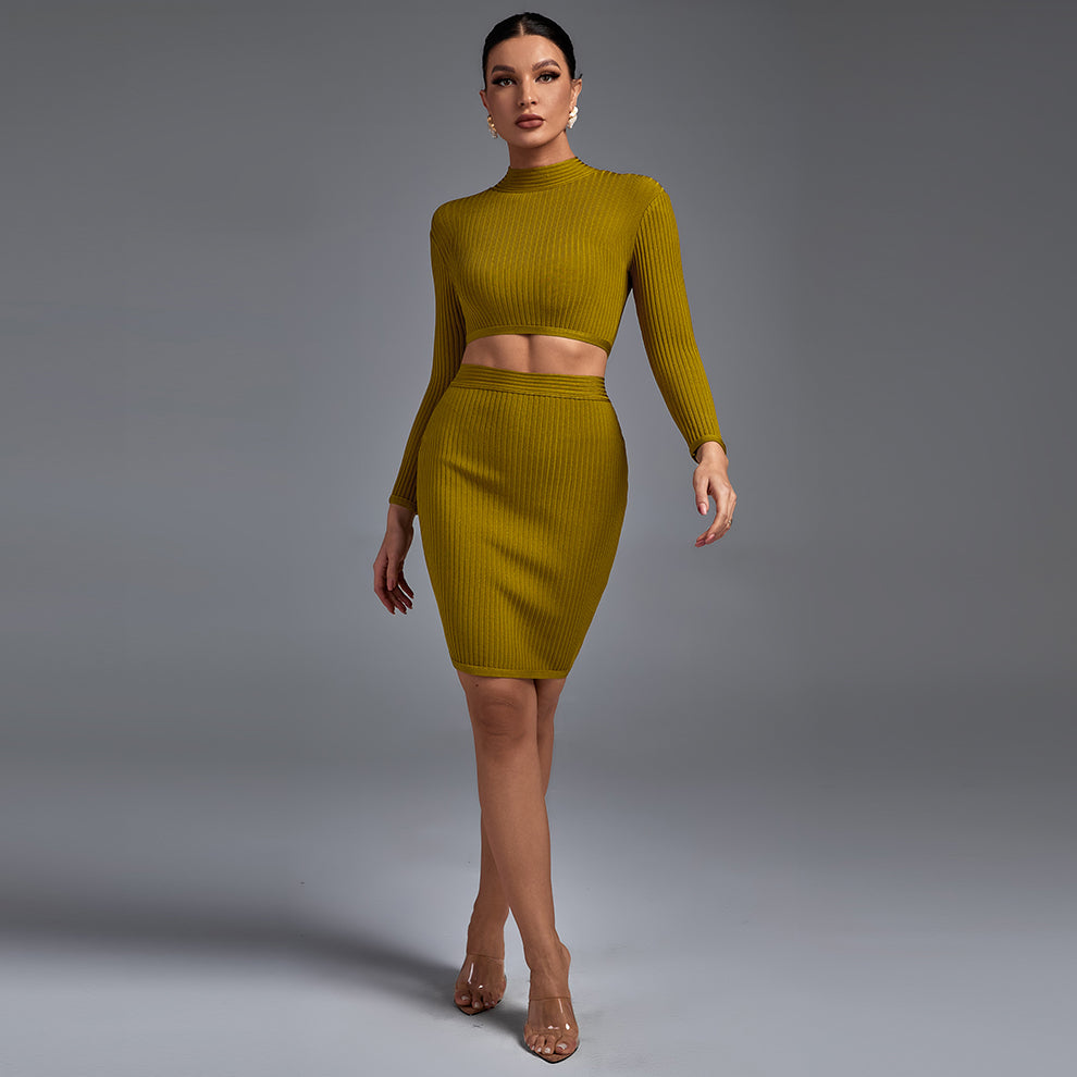 Ensemble de mini bandages simples à col rond et à manches longues