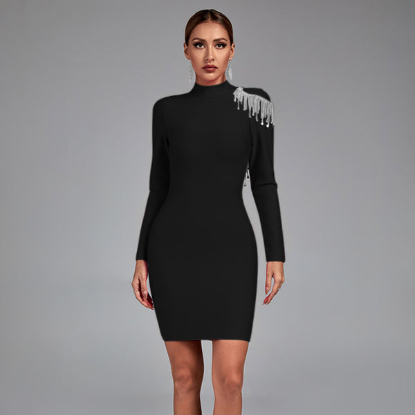 Robe bandage mi-longue à manches longues et épaules dénudées
